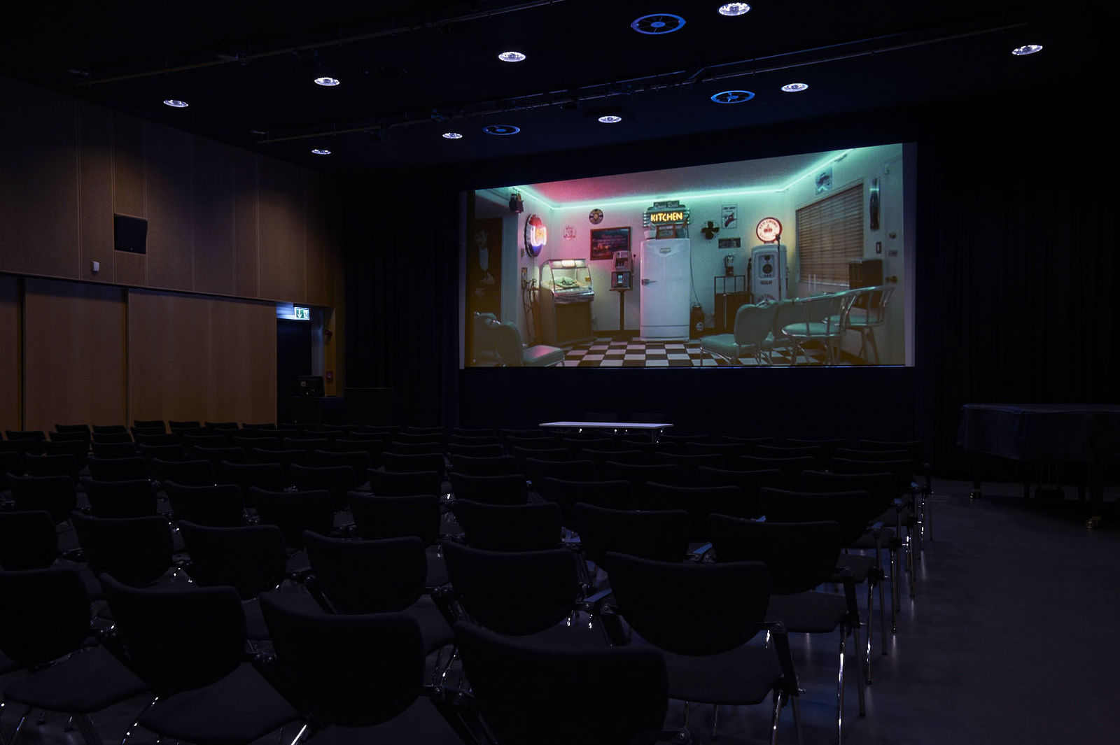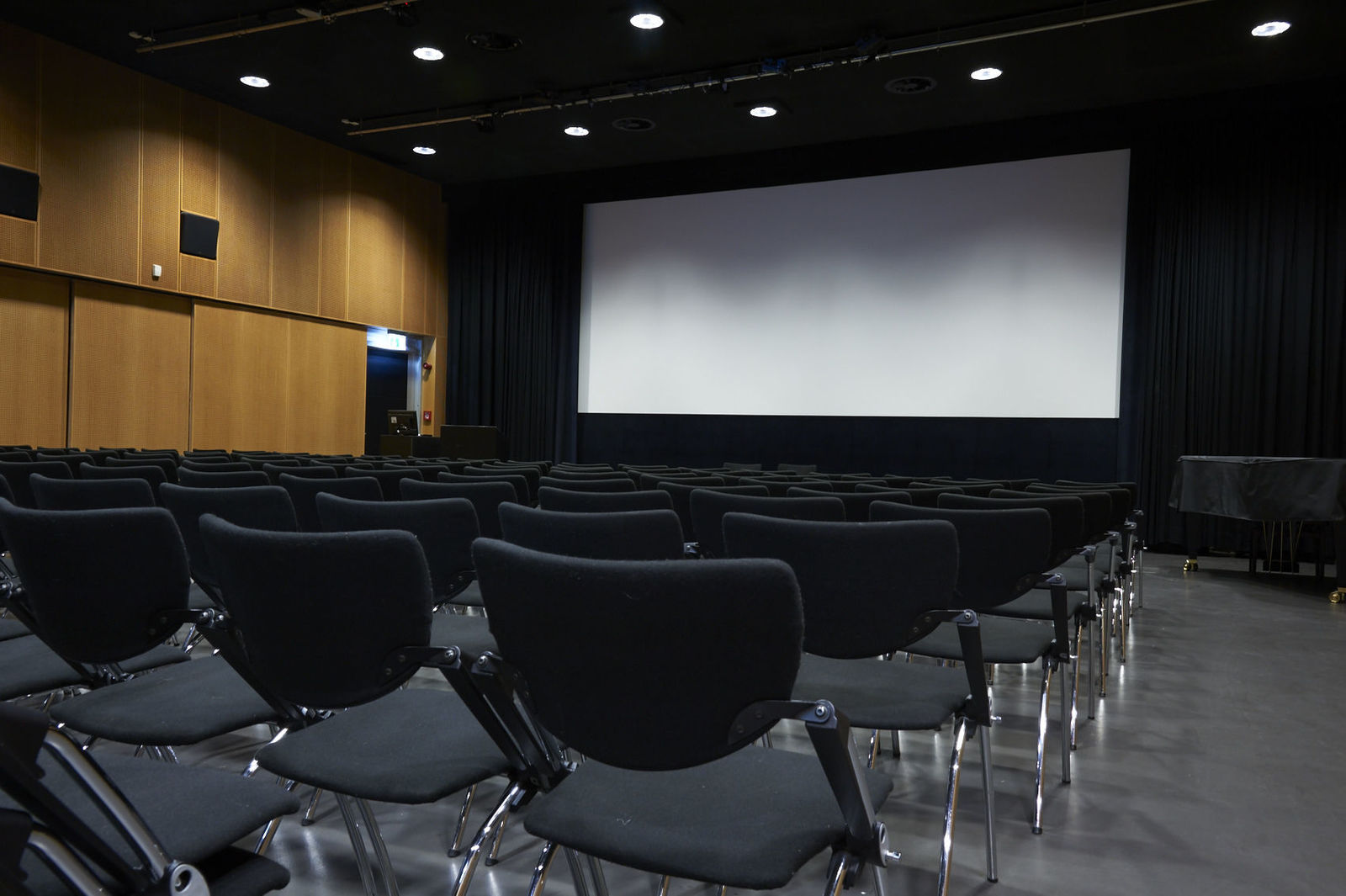 With a maximum capacity of 199 seats, the Aula is the KHM’s main events room. It is used during the day for seminars, and during the evening for events such as film screenings, concerts, symposia or dance performances. Lutz Mennicken is the contact for the Aula’s presentation, light and sound equipment.