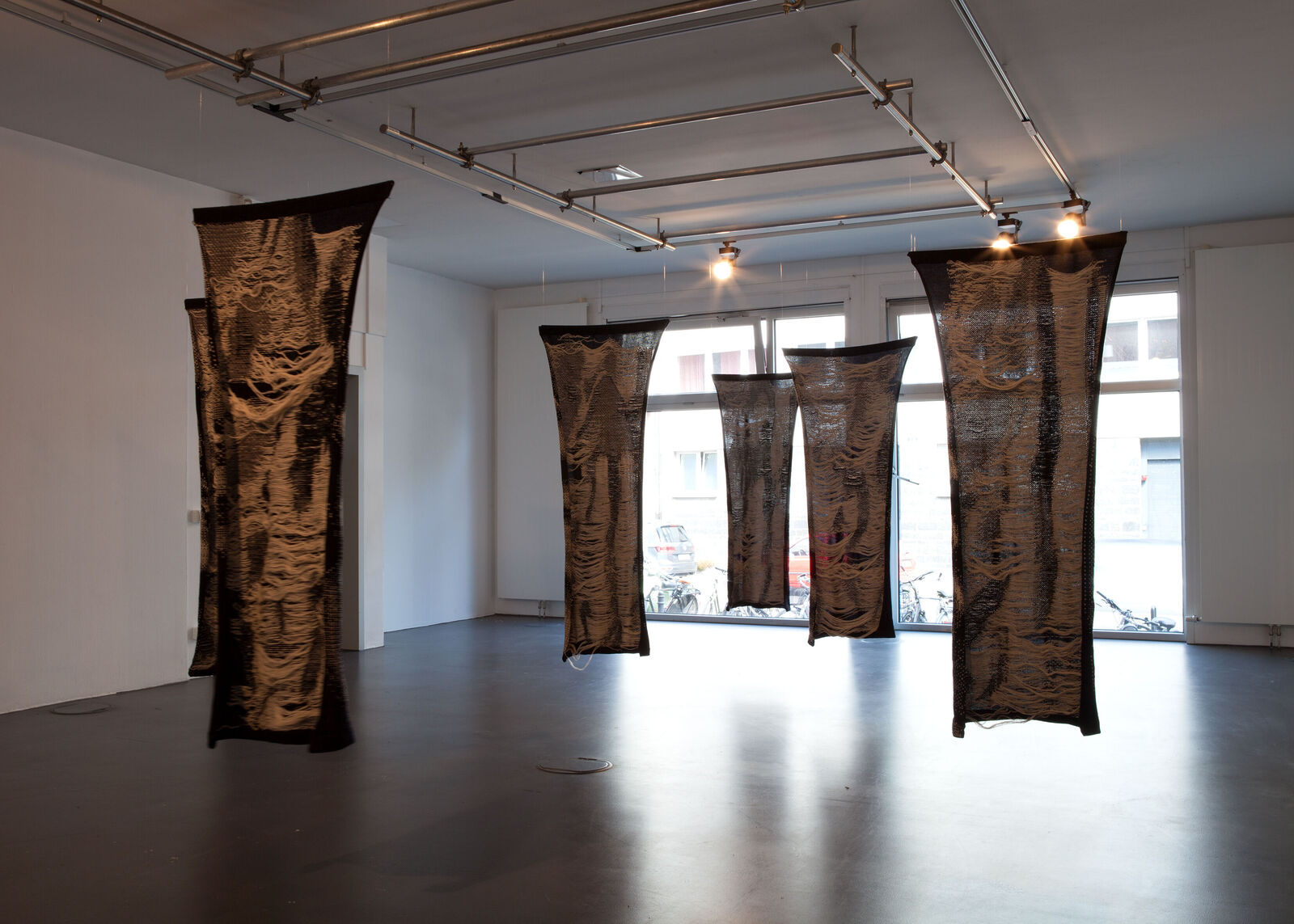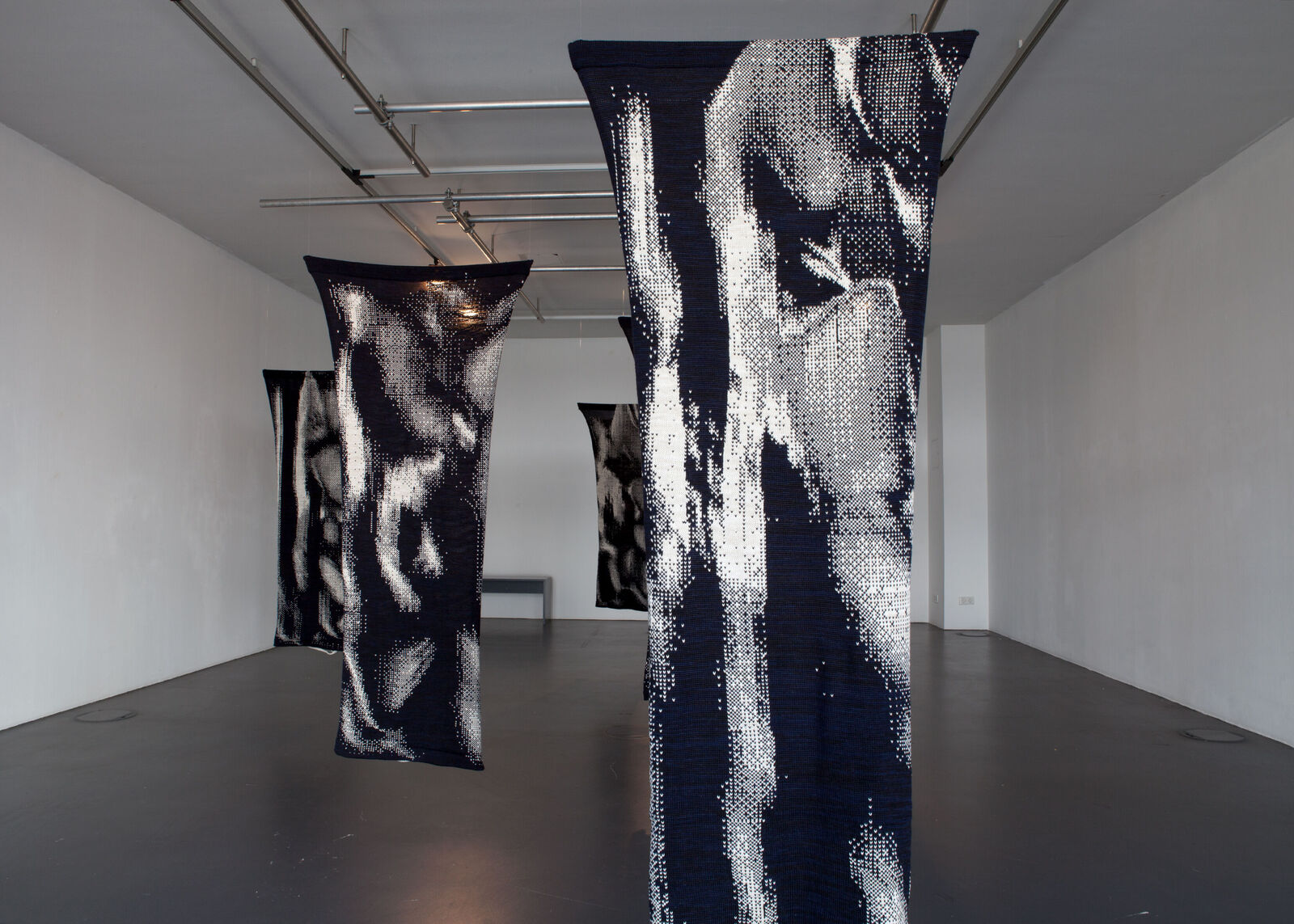 In ihrer eigens für die Ausstellung entstandenen Arbeit „Interwoven“ übersetzen Vera Drebusch und Florian Egermann Twitter-Daten per „computational knitting“ in alltäglich anmutende und zugleich auratische Strickwerke. Die mehrteilige Installation reflektiert den ambivalenten Umgang mit den zunehmenden Informationsströmen, die unseren Alltag prägen. Desinformationen und Verschwörungsmythen verstricken – katalysiert durch die sozialen Medien – Familien und Freundeskreise in teils kontroverse Diskussionen. >> Ankündigungstext