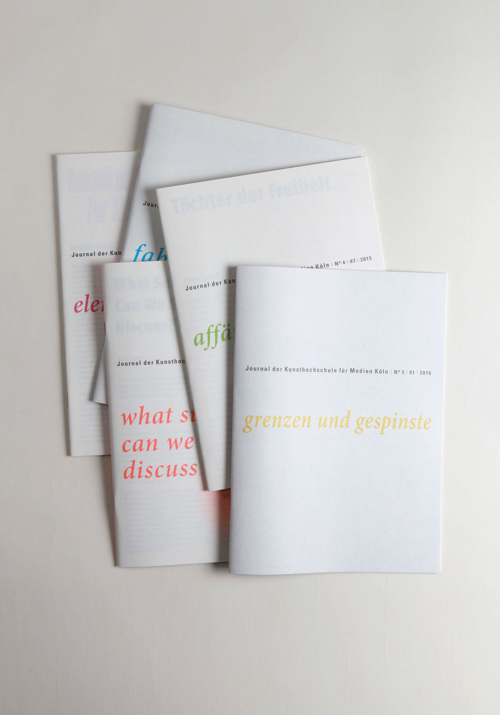 Das Journal der Kunsthochschule für Medien Köln ist von 2014 bis 2020 erschienen. Insgesamt zwölf Ausgaben behandelten in Text- und Bild-Essays, Kolumnen, Glossen, künstlerischen Beiträgen und poetischen Reflexionen aktuelle Entwicklungen, Diskurse und Debatten und beschäftigten sich – über das im Feld der Künste und der Wissenschaften Auffallende hinaus – mit politischen, philosophischen und ästhetischen Fragen, aber auch mit technischen, medialen und gesamtgesellschaftlichen Entwicklungen.