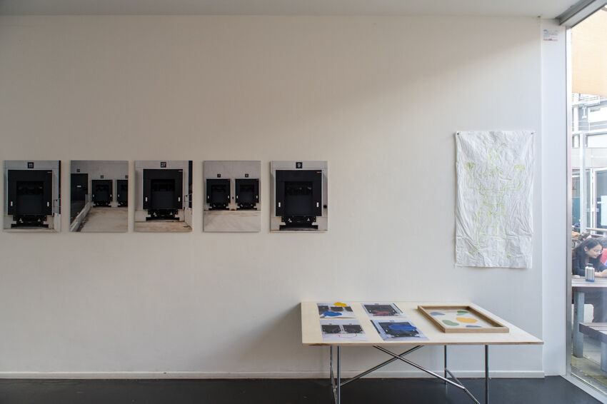 ![]() David Lichter, "Vitalisstraße 180", 5 Inkjet-Prints auf Dibond, je 62 x 50 cm / "My little desk", Acryl- und Ölfarbe, Papier, Sperrholz, Chrom, Größe variabel / "Donkey (1)", Toner auf Papiertuch, Lack, 140 x 80 cm |