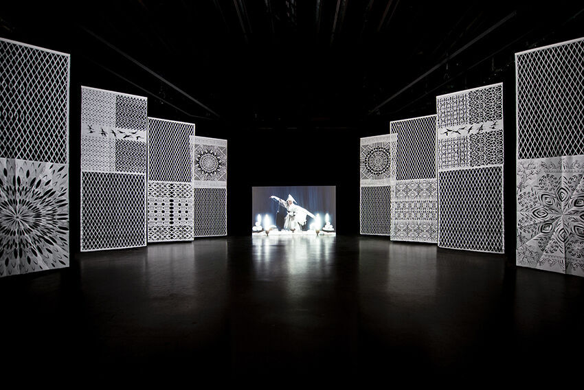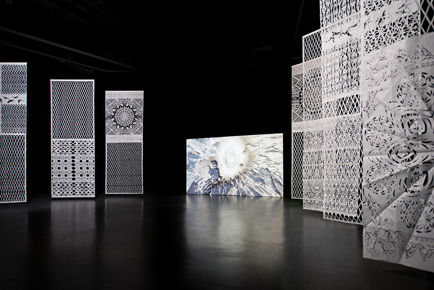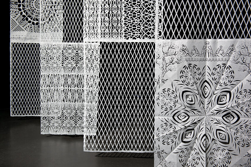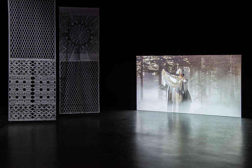 Hanna Noh, An Uncontacted Tribe, 2022, Installation: Koreanisches Papier,, Holz, Experimentalfilm, 20:35 Min.