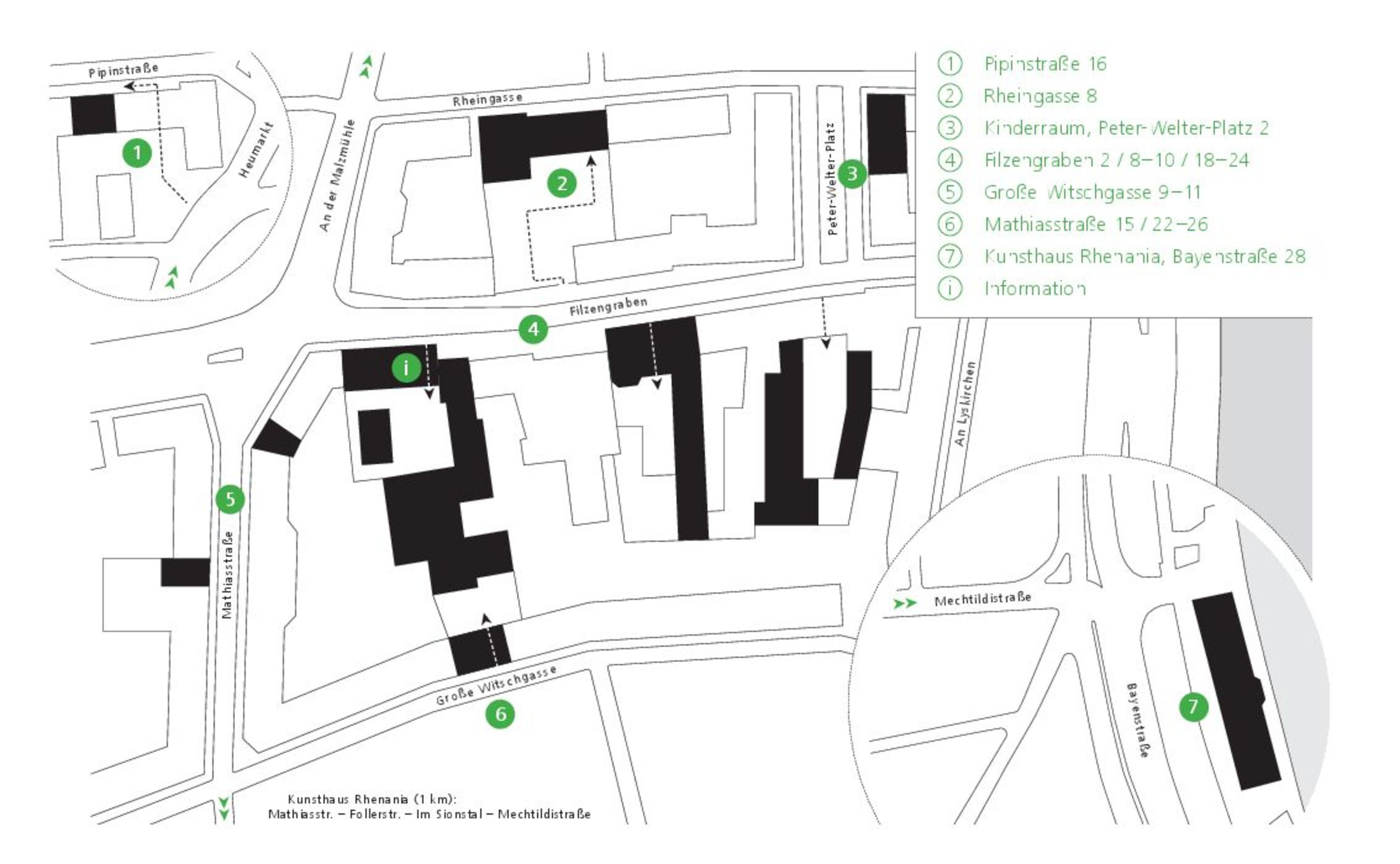 Zentrale Information + Aulakino: Foyer Neubau, Freitag bis Sonntag, 14 bis 21 Uhr