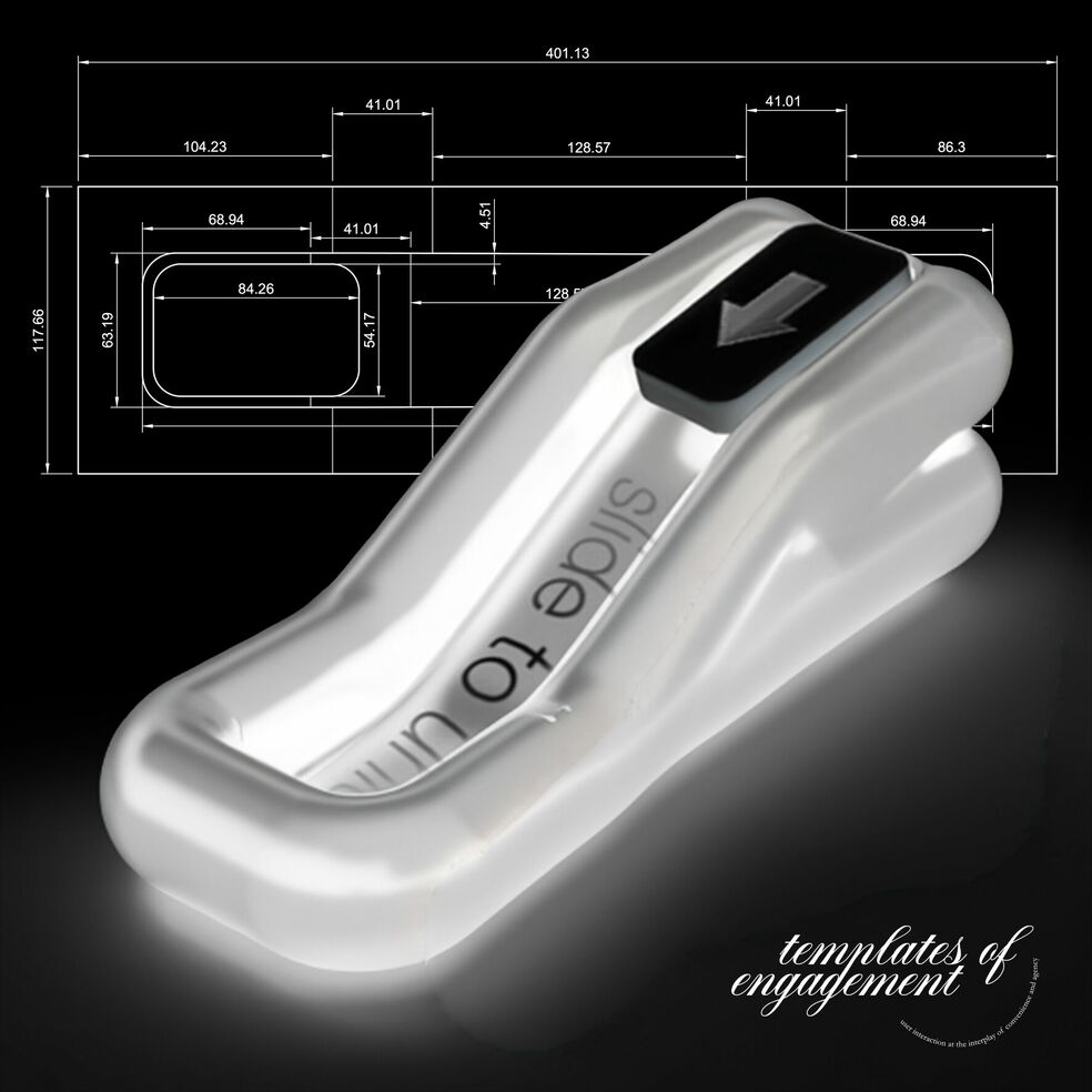 of a digital user interface. Produced at a 78:1 scale, as a replica of Apple’s original “slide to