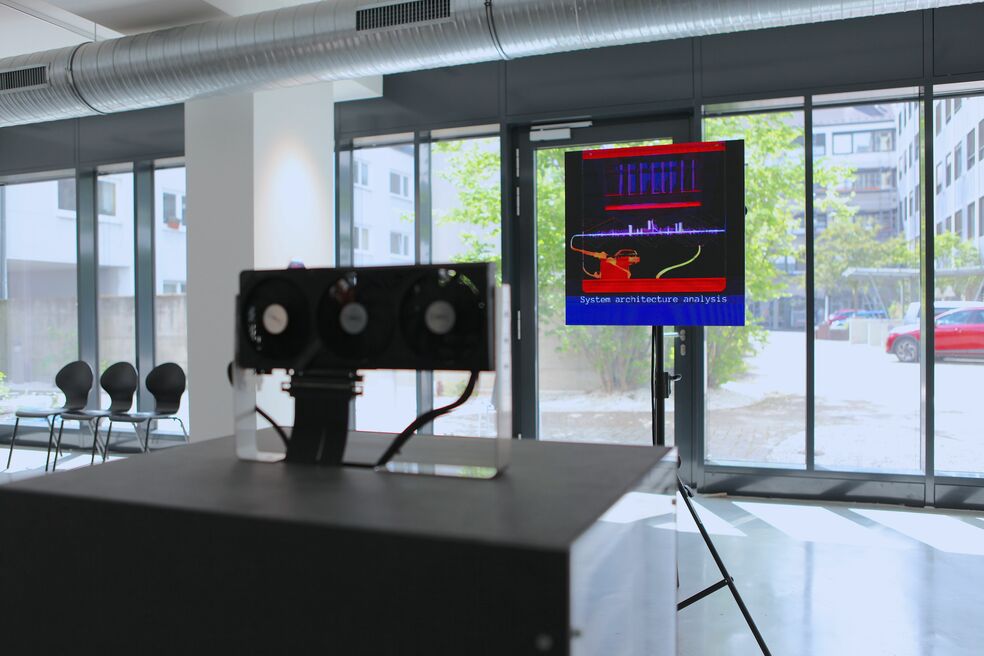 Die künstlerische Praxis von Ting-Chun Liu beginnt mit einer einfachen Überlegung: Wie erzeugt eine künstliche Intelligenz ein Bild? Diese Frage ergab sich aus einem Mangel an Grafikkarten für KI-bezogene Experimente und führte schließlich zu einer tieferen Untersuchung der Herstellung von Grafikprozessoren. Tin-Chun Liu arbeitet mit künstlicher Intelligenz aus einem Verständnis jener industriellen und geopolitischen Verbindungen heraus, die den Aufstieg der auf Transformer-Architektur basierten KI unterstützen. Er untersucht, wie ihre besonderen ästhetischen Qualitäten durch materielle Beschränkungen, algorithmische Logik und politische Infrastrukturen geformt und beschränkt werden. Entstanden ist daraus eine Rückkopplungsmaschine, die sowohl Wärme als auch bewegte Bilder erzeugt.