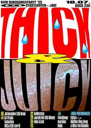 23 Uhr–open end, THICK & JUCY: KHM Rundgangsparty ’25, Stadtgarten + JAKI, Venloer Str. 40, 50672 Köln