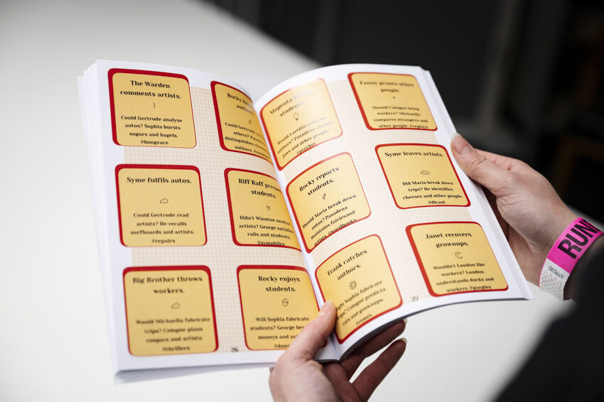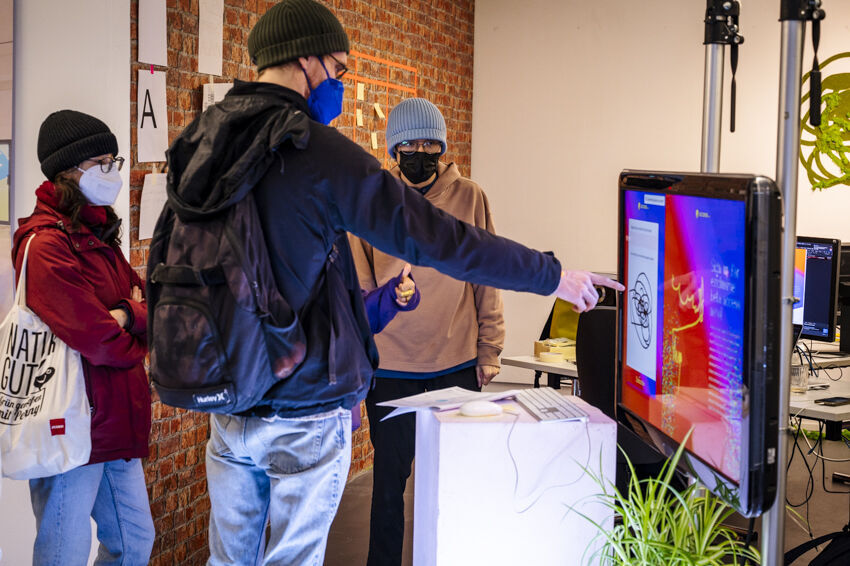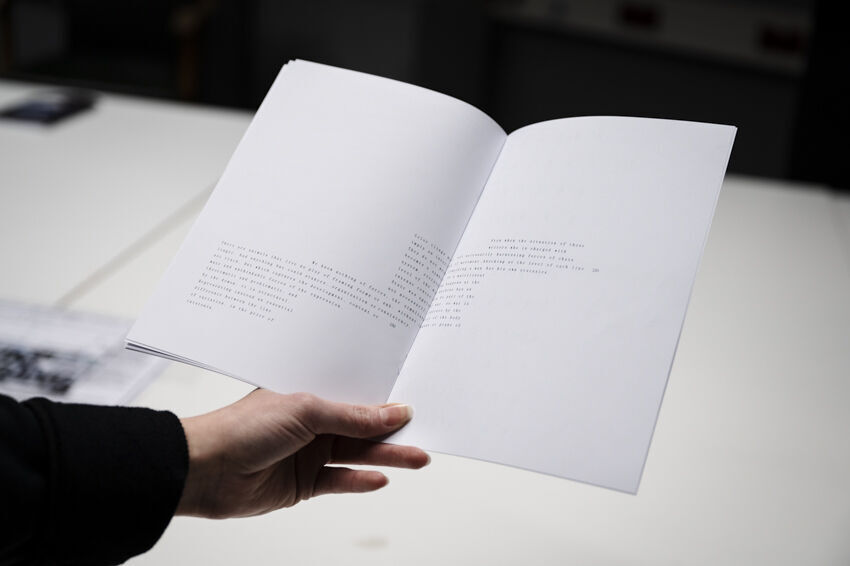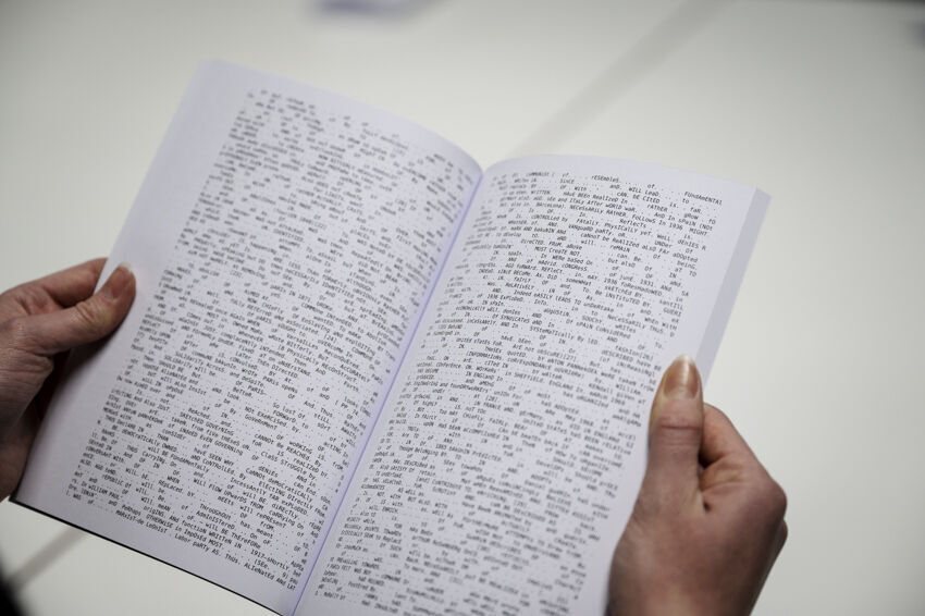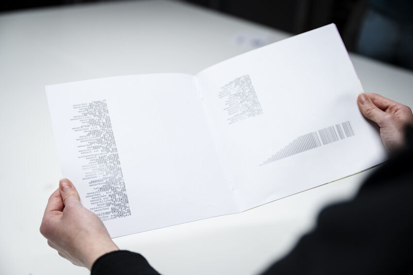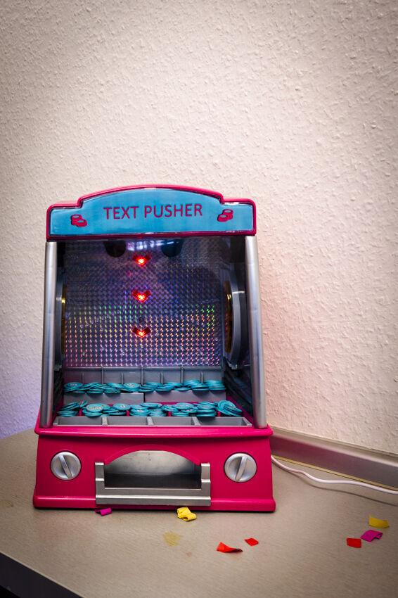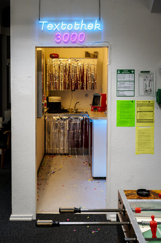 Im Zentrum der Präsentation im [ ] ground zero stehen Code & Literatur: Die interaktive Installation „Textothek 3000“ von Julia Nakotte befasst sich mit den in der GlüStV §26 formulierten „Anforderungen an die Ausgestaltung und den Betrieb von Spielhallen“. Die „computer generated book journey“ knüpft an experimentelle literarische Praxen an, aber auch die frühe KI-Sprachforschung. Viele dieser tradierten Schreibweisen sind inzwischen Teil unseres Alltags geworden. Die KHM-Studierenden Julia Nakotte, Tiago Ive Rubini, Benita Martis, Naoto Hieda, Sayaka Kuramochi (und special guest Luther Blissett) programmierten als Teilnehmer*innen des NaNoGenMo ‘21 (National Novel Generation Month) vom 1. bis 30. November 2021 einen Code, der wiederum einen 50.000 Wörter umfassenden Roman schrieb. In [ ] ground zero werden ihre code-literarischen Experimente in Buchform präsentiert.
