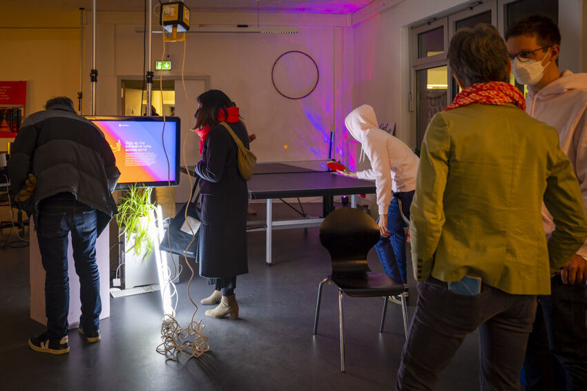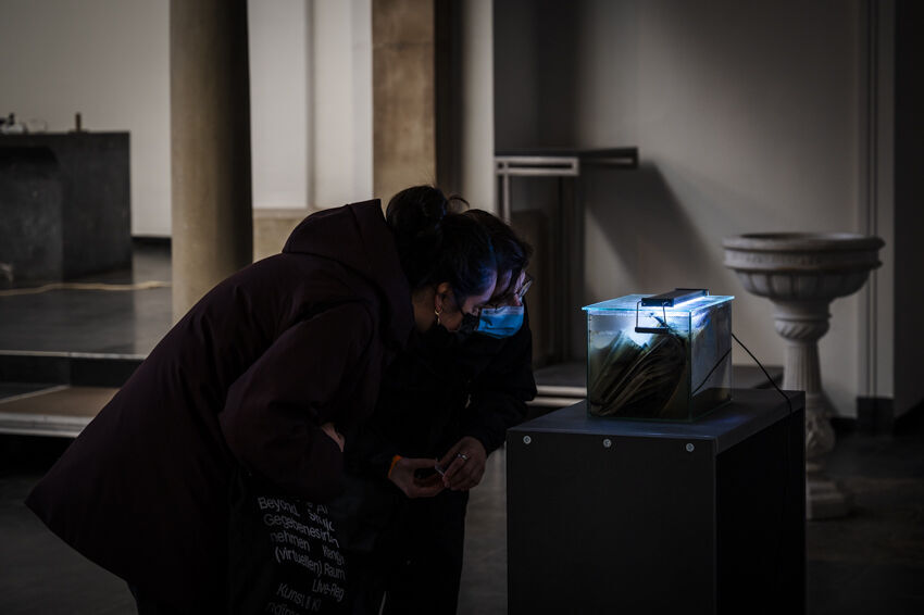 ![]() SILBERFISCHKOLLEKTIV (Yohan Raphaël Holtkamp / Benita Martis, ALLES ALLES, 2022 Interaktive Mixed-Media-Installation Foto: Dörthe Boxberg |