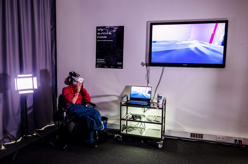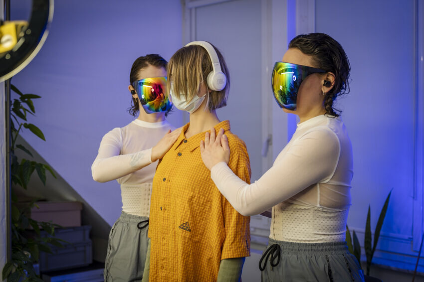 ![]() Lisa Reutelsterz, try e.m.i.s. now, 2021 VR Theaterperformance, Originaldauer: 45 min. /VR 20 min. In Zusammenarbeit mit Carolin Schabbing (KISD) Foto: Dörthe Boxberg |