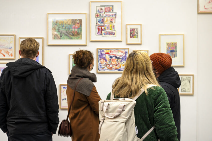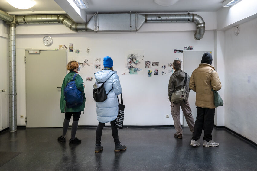 ![]() Julia Jesionek, Nikolas Müller, Tobias Schulenburg, Drawing Group, Bleistift, Marker, Aquarellfarbe auf Papier, verschiedene Formate Foto: Dörthe Boxberg |