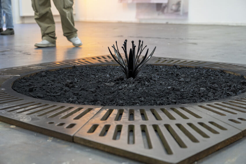![]() Victor Beger, "Abraum", 2022, Stahl, Kohle, Plastikblume 200 x 200 cm Foto: Dörthe Boxberg |