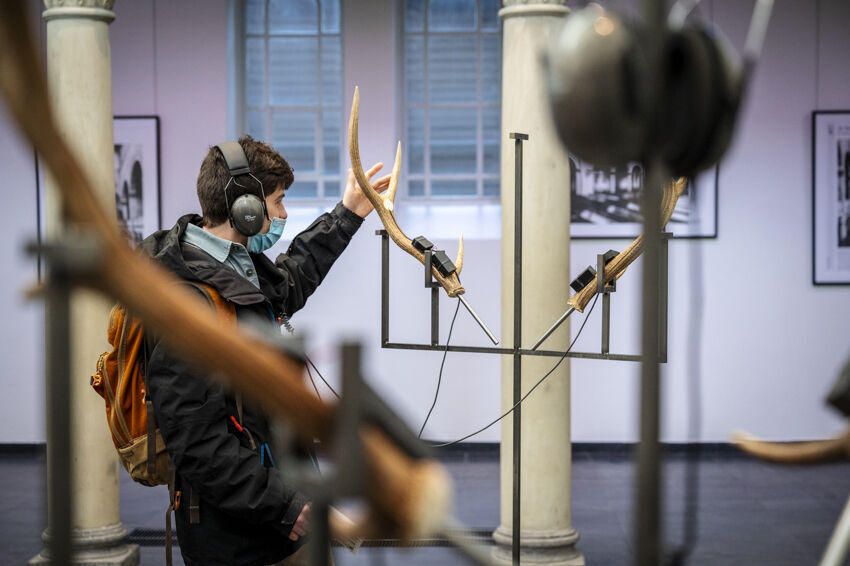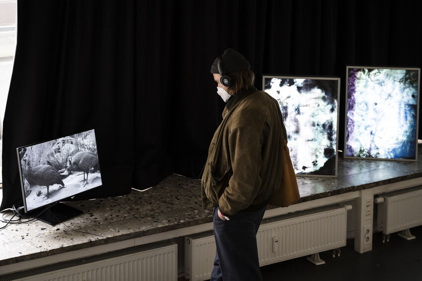 ![]() Corinna J. Duschl, Brünfte, 2022, 1-Kanal-Videoinstallation, Klangobjekte, ca. 180 x 300 cm Foto: Dörthe Boxberg |
