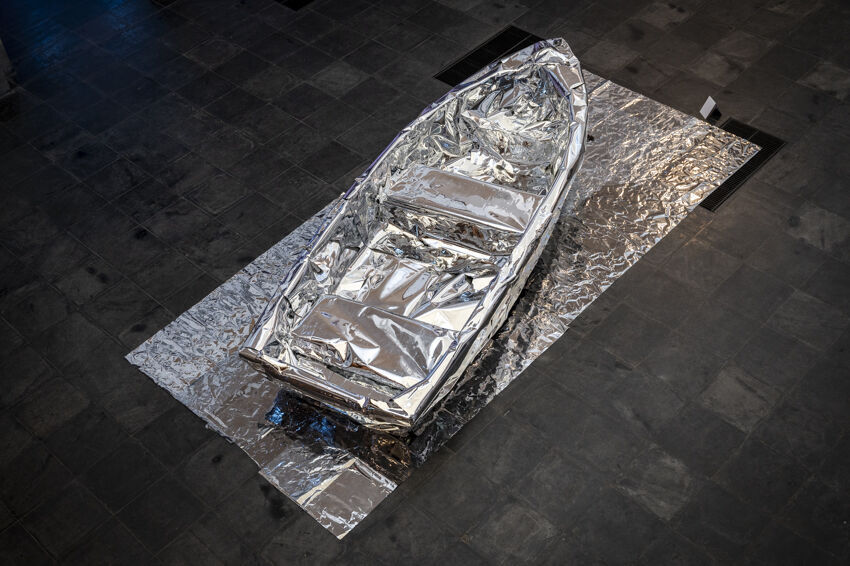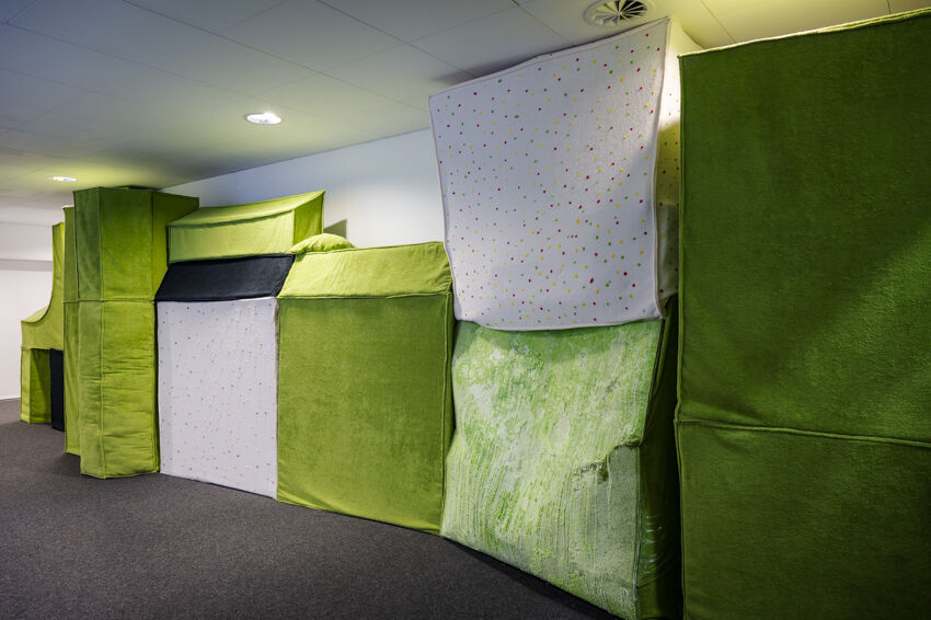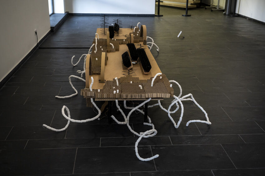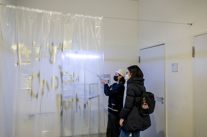 ![]() Denys Saitov, APATE, 2021, Installation, 420 x 200 cm Foto: Dörthe Boxberg |