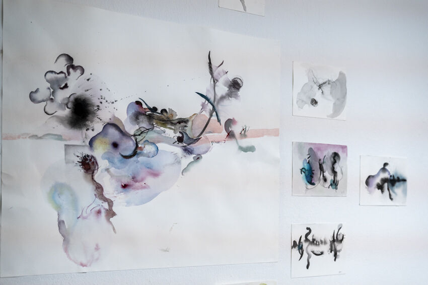 ![]() Mengting Xing, Walking in the Images, 2021 Aquarelle, verschiedene Größen Foto: Dörthe Boxberg |