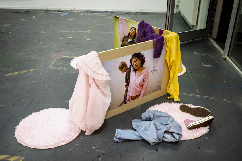 ![]() Rosa Sadnik, "Just a lucky day", 2021, Inkjet-Prints auf Spanplatte, 85 x 240 cm Foto: Dörthe Boxberg |