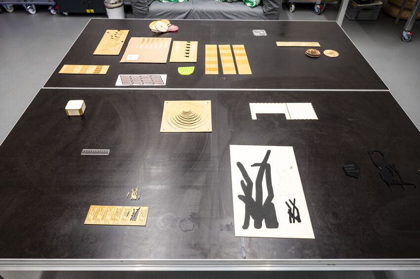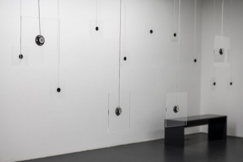 ![]() Jiyun Park, "Applaus", 2020, Soundinstallation, 30 Klangobjekte, je 20 x 20 x 1 cm, Transducer Foto: Dörthe Boxberg |