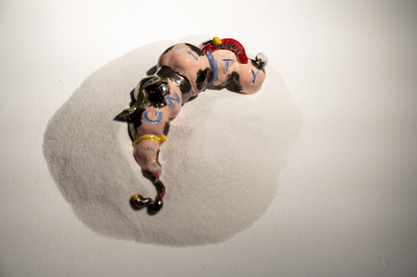 ![]() Hermes Ascan Sue Delarber, "Digest Dignity", 2021, glasierte Tonskulptur, 17 x 7 cm Foto: Dörthe Boxberg |
