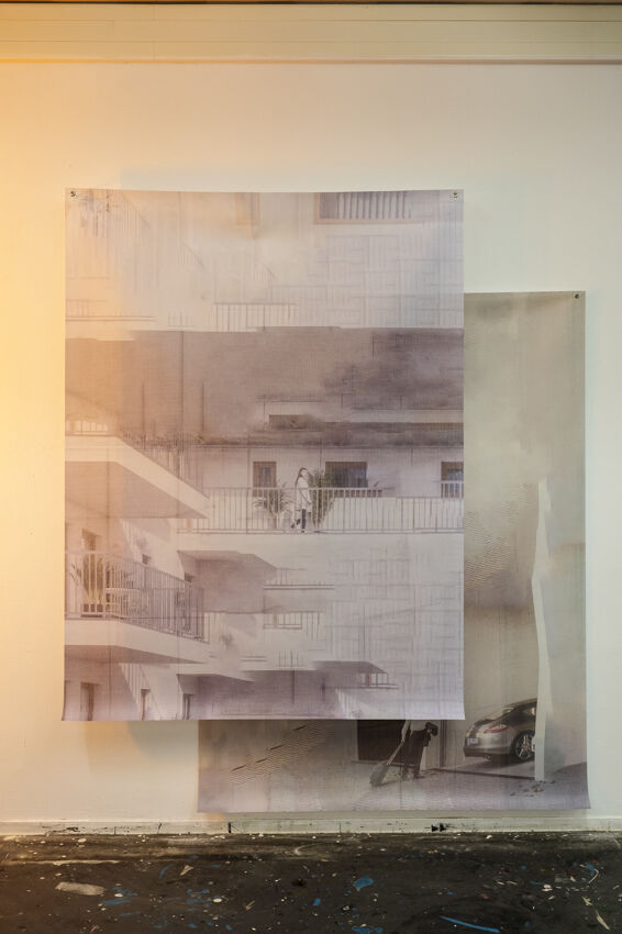 ![]() Johann Husser, "Proposal for a city", 2021, 2 Mesh-Banner, je 200 x 150 cm Foto: Dörthe Boxberg |