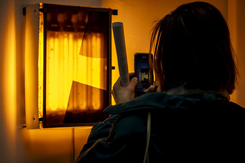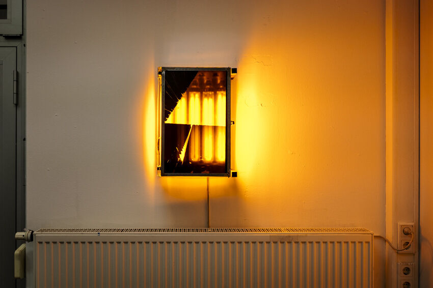 ![]() Friedrich Boell, "LVDS x LPS", 2021, Display, Natriumlampen, Metal, 52 x 35 cm Foto: Dörthe Boxberg |
