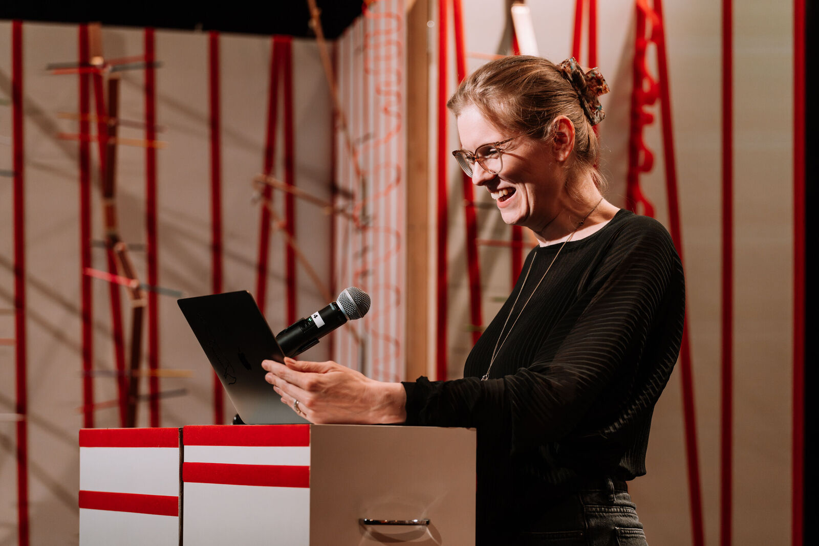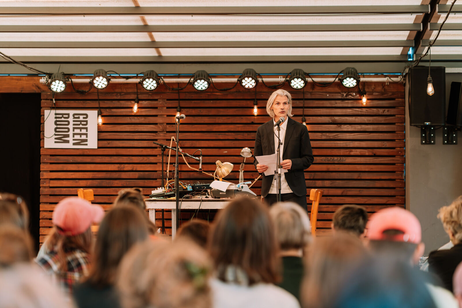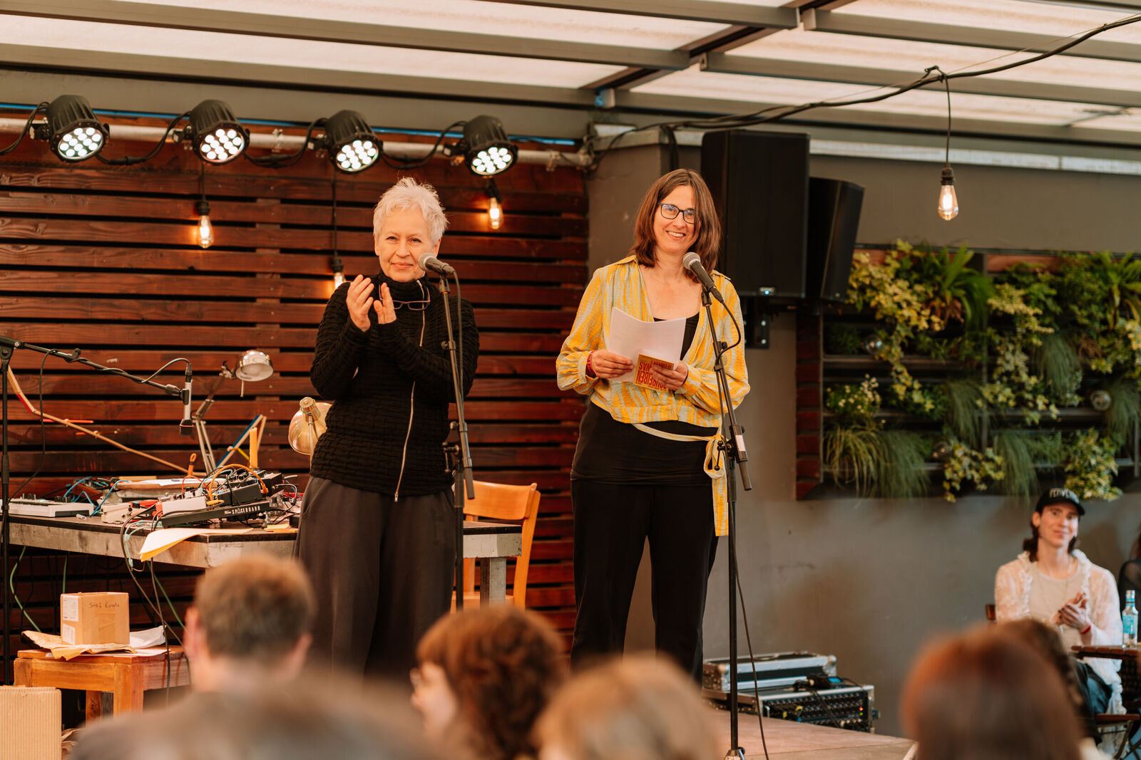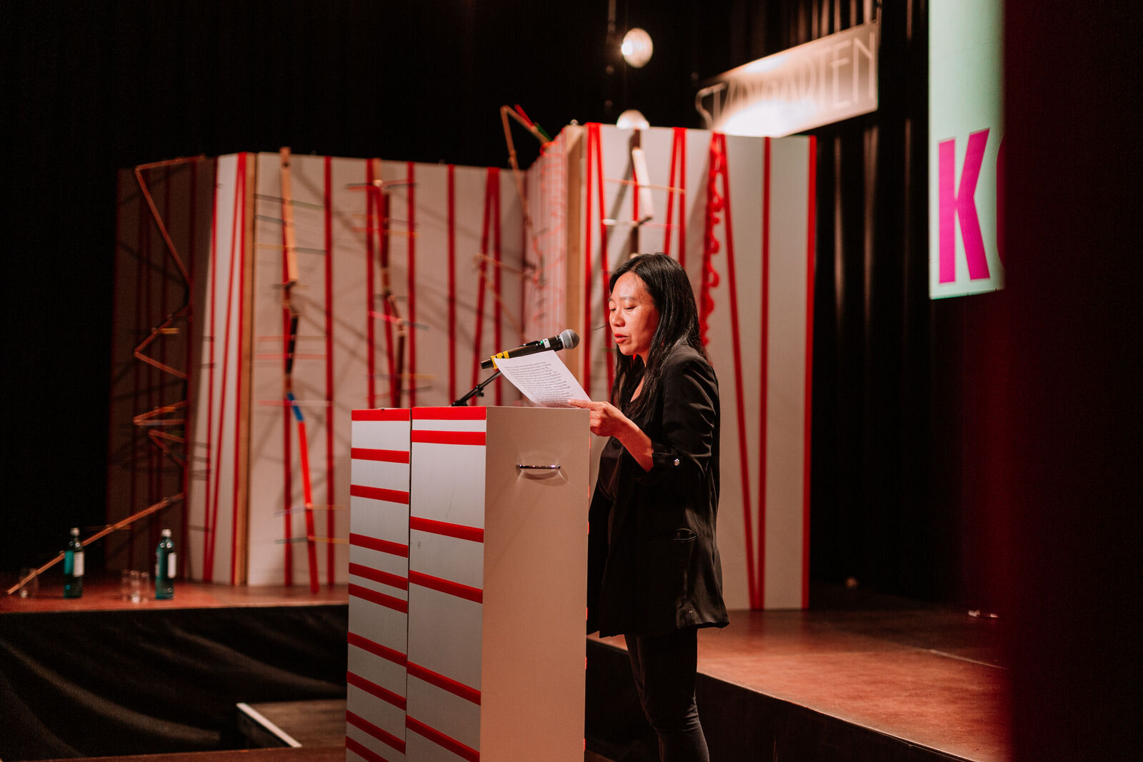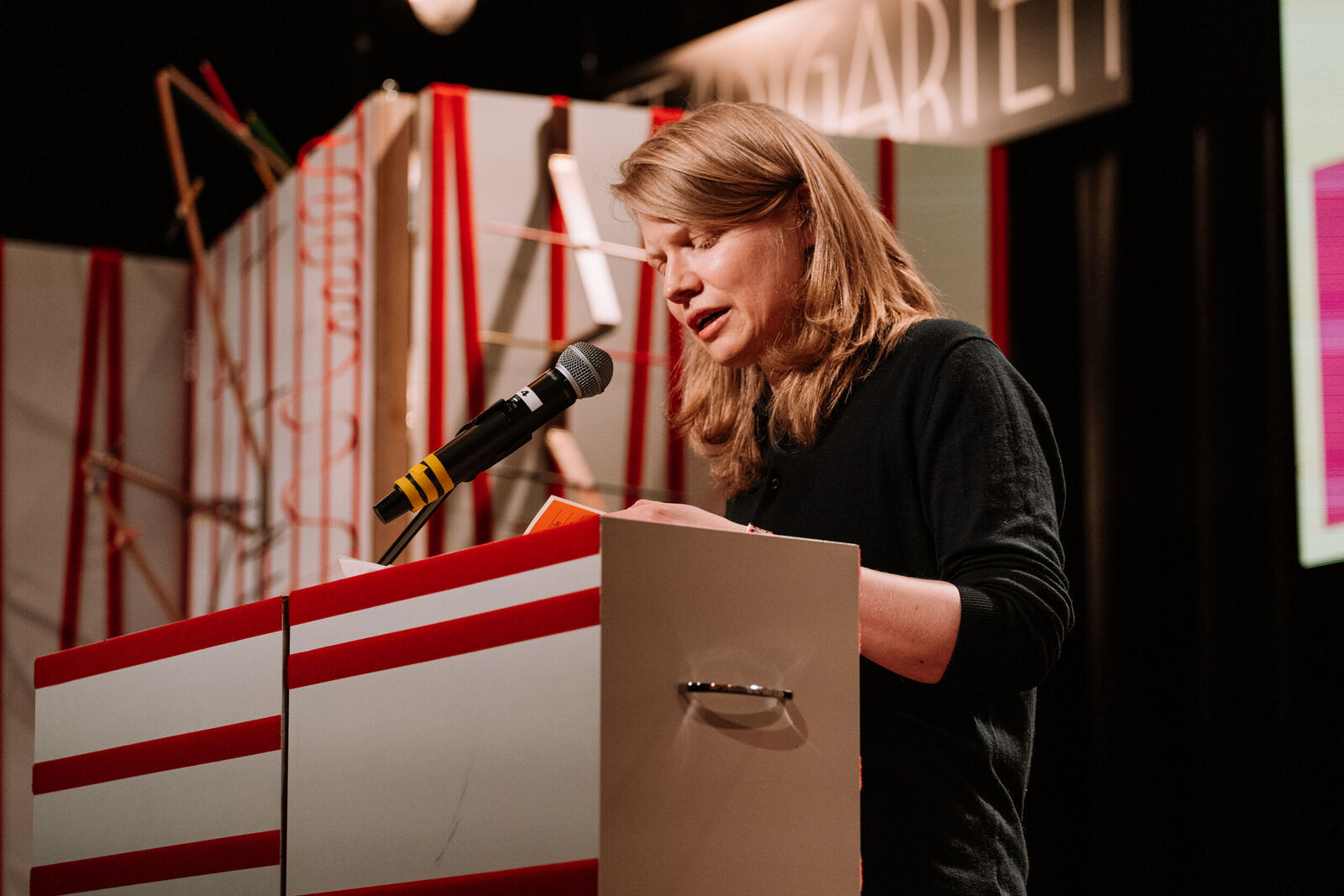 Grußworte von Kathrin Röggla (Kunsthochschule für Medien Köln), Ulrike Draesner (Deutsches Literaturinstitut Leipzig), Stefan Charles (Kulturdezernent der Stadt Köln) und Andrea Firmenich (Generalsekretärin der Kunststiftung NRW)