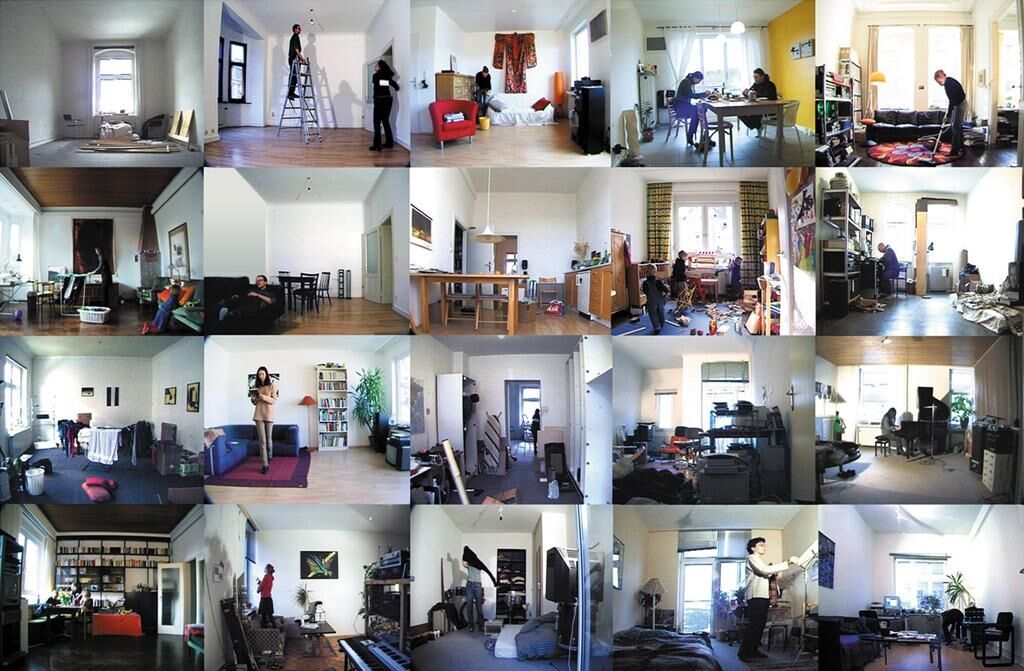 In einer bildlich konstruierten Architektur werden Videoaufnahmen von privaten Wohnräumen zusammengesetzt. Circa 30 unterschiedliche Lebens- oder Standorte werden mit einer Videokamera aufgenommen. Die Kamera erfasst die frontale Perspektive der Räume. Die verschiedenen Videosequenzen werden in der Nachbearbeitung digital zu einem Tableau zuzammengefügt. Die so entstehende Video-Collage wird am Ende aussehen wie der Schnitt durch einen Wohnblock, ein architektonisches Konstrukt. Die Komposition zeigt einen lebendigen Organismus, ein soziales Labyrinth, eine Mixtur aus moderner Gesellschaft mit Infrastruktur und privaten Lebens-Standorten. Die Wohnung als intime Umgebung des modernen Menschen ist individuell geprägt und doch institutionalisiert, durch die moderne Wohnkultur und ihr immer gleiches Inventar.