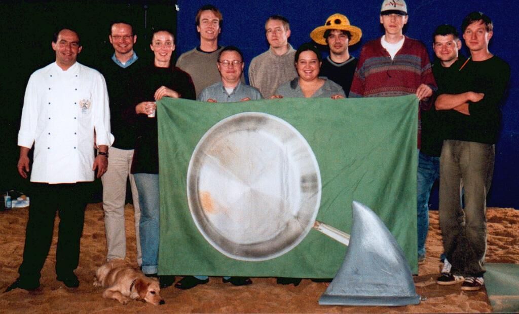 Während uns Alfred Biolek das perfekte Rezept für Pfannenbraten erklärt, grillt ein kleiner, dicker Mann fröhlich Steaks am Strand. Seine dalle Frau schmort in der Sonne. Als er ihr statt Sonnenöl Meggle-Kräuterbutter zum Einreiben gibt, beginnt sie lecker zu duften, was widerum einen Hai auf den Plan ruft. Denn es gilt: Meggle – Genuß für jedermann.