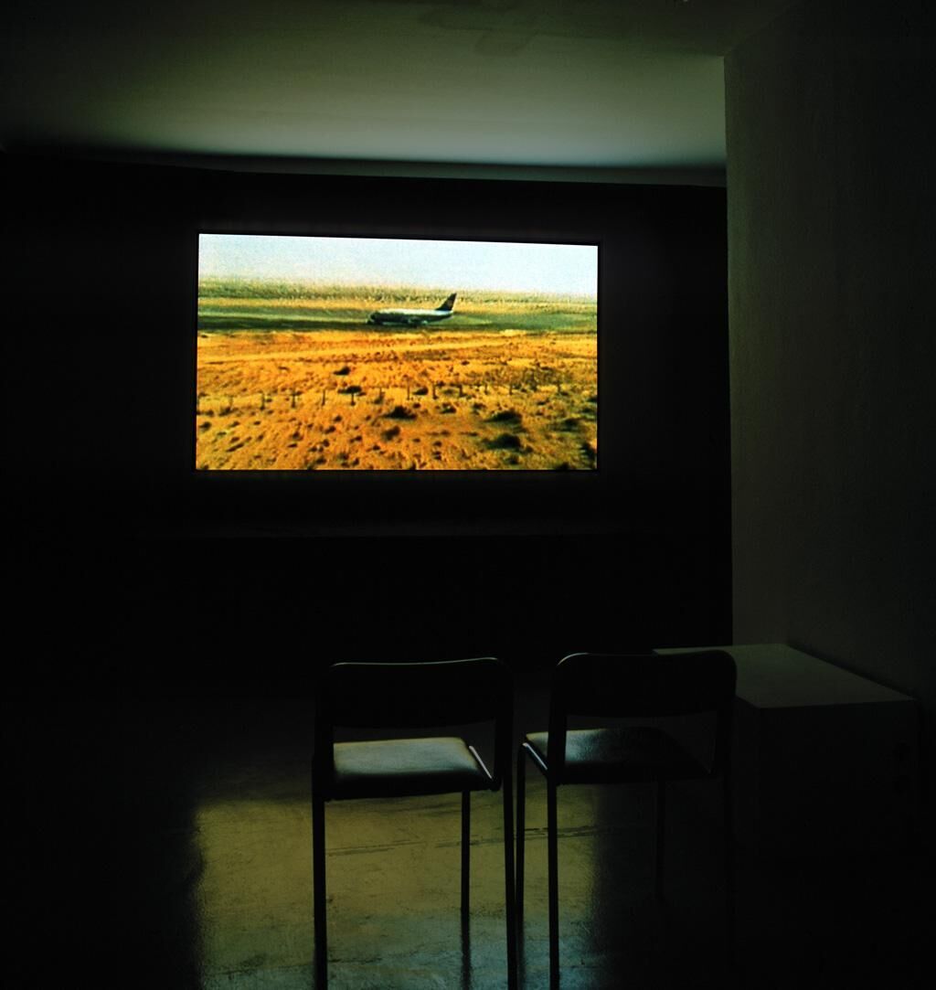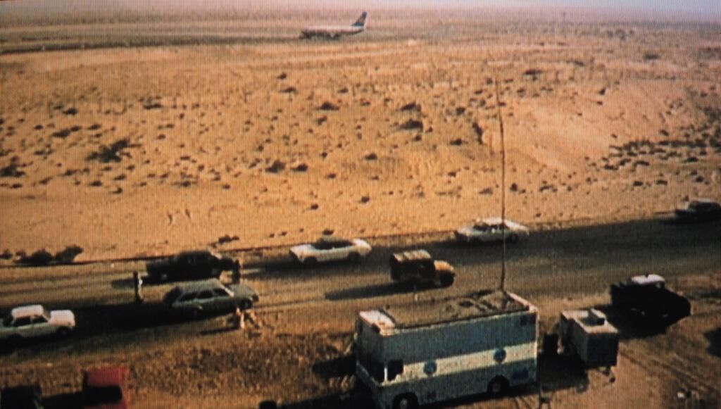 Ein Flugzeug steht in der Wüste. Nichts scheint zu geschehen, lediglich “heiße luft” flirrt und flimmert wie bei einer Fata Morgana.