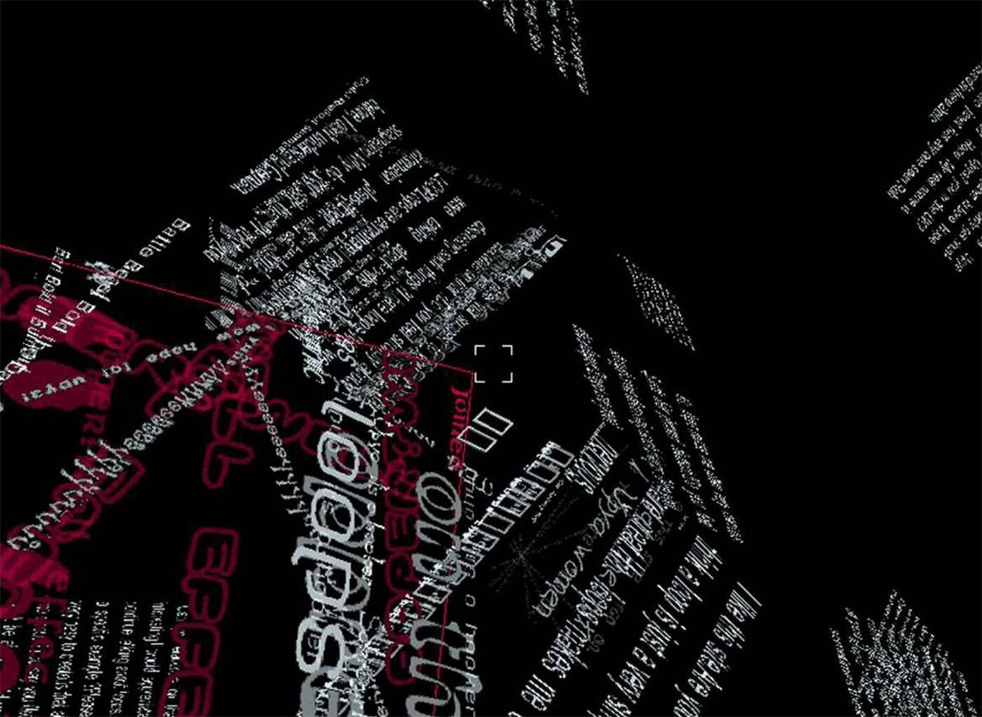 Live Chat conversations are eavesdropped upon and then visually presented in a 3d virtual environment, as a language synthesizer with a permanently changing voice recites chat dialogues out loud. It is possible to navigate between texts, pass through them, and to observe them from all sides. By selecting textparts they will be mixed together and a kind of poetry results from the combination of algorithmic word patterns and their content: words that originate from chat rooms. The different languages provide different sounds and melodies. As two texts are always simultaneously recited in different languages, with different parameters (of synthesis), even more differentiated rhythms and melodies result. The more mixed the texts are, the more ordered they become.