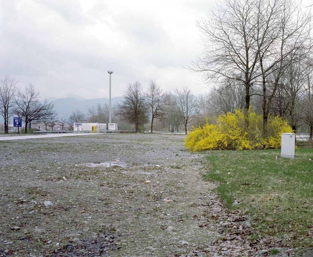 Die Arbeit „Null Staaten“ ist eine Bestandsaufnahme der 15 Autobahngrenzen Deutschlands zu ihren Nachbarstaaten Österreich, Frankreich, Luxemburg, Belgien, Holland und Dänemark. Nach der Einigung über die Osterweiterung der Europäischen Union wird das Projekt um vier weitere Autobahngrenzen erweitert. Ab dem 1. Mai 2004 sind die Autobahngrenzen Deutschlands zu Polen geöffnet. Die Orte Stettin, Frankfurt (Oder), Forst und Görlitz schließen die im Jahre 2001 begonnene Serie mit nun 19 Aufnahmen ab. Die Grenzen unterliegen einer komplexen historischen wie zukünftigen Entwicklung. Die ersten Anlagen wurden bereits abgerissen, wie 2001 an den Übergängen zu Österreich bei Kiefersfelden und letztes Jahr am Walserberg geschehen. Die Grenzen fungieren in ihrem landschaftlich-räumlichen sowie ihrem politischen Kontext als Dokumente eines vielschichtigen Prozesses. Sie markieren auch eine emotionale Grenze, im Besonderen diejenige zu Polen. Waren die Grenzeinrichtungen vor dem Schengener Abkommen Kontrollinstrumente der Staaten, sind sie nun nach beinahe zehn Jahren der Funktionslosigkeit merkwürdige, durch eine verlassene Architektur gekennzeichnete Orte. Die ehemals objektiv spürbare Präsenz des Staates verlagert sich zu einer subjektiven und multimedialen Überwachung im Binnenraum und an den europäischen Außengrenzen. Ergänzt werden die Bilder durch einen Tisch mit dokumentarischem Material (Skizzen, Notizen, Dias und Abzüge), sowie durch den Film „An manchen Orten“ (23 Min.), eine Art videographisches Feldtagebuch der Expedition an die Ränder der Republik. Die Aufnahmen sind Dokumente alltäglicher Ereignisse, die die rund 10000 km lange Fahrt unterbrachen. Ihre Besonderheit liegt darin, dass sie Zäsuren und Haltepunkte in einer ansonsten andauernden, gleichförmigen Bewegung zwischen den Grenzübergängen sind.