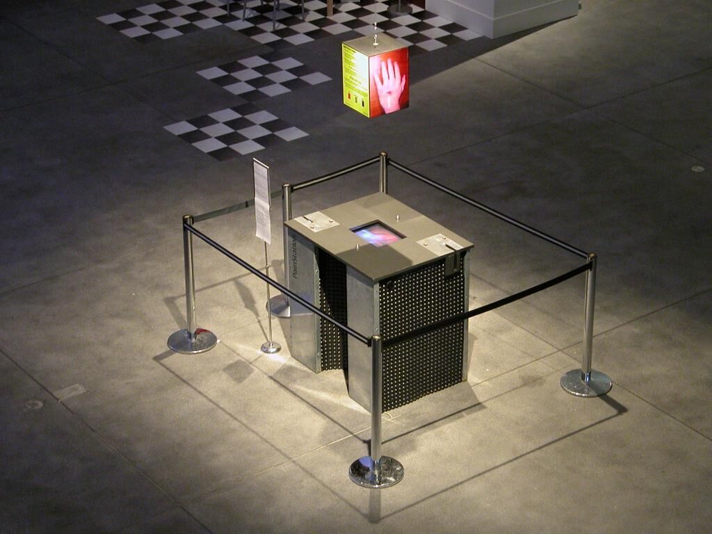 Two player table console. Virtuality intervenes into the physical world through a game interface: Making mistakes in the game results in pain in the real world.