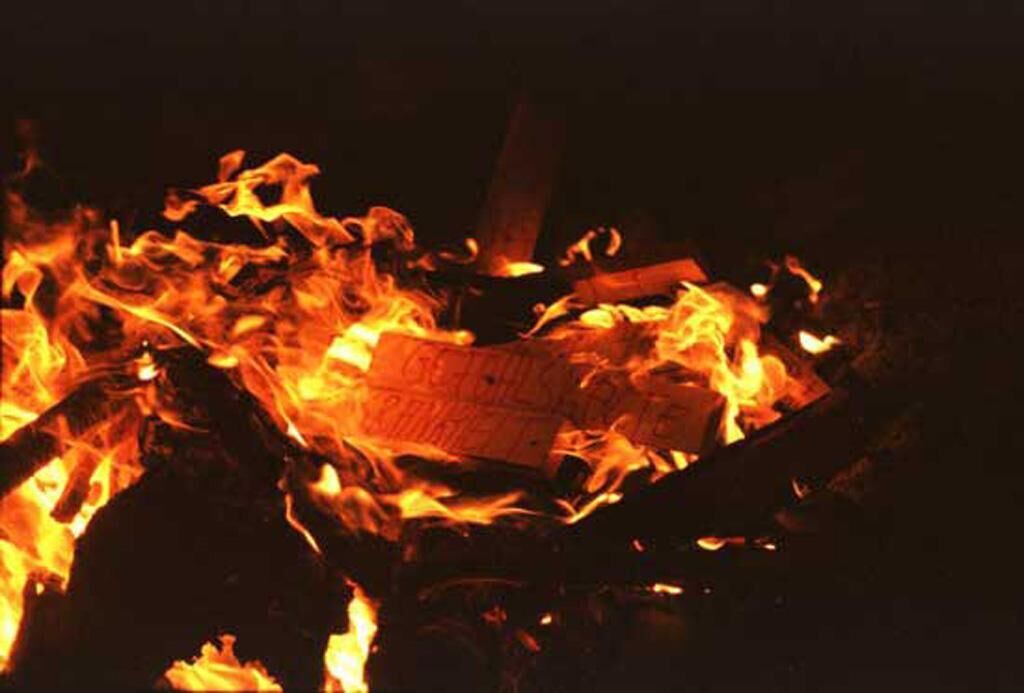 Hölzer werden verteilt und bereitgestellt. Etwa vierzig Zentimeter lange Holzbalken. An viele Leute. Ein Holz für einen Menschen. Diese Hölzer werden Speicher, Sichtbarmacher. Auf jedem Holz sei geschrieben, geritzt, gemalt: die größte Angst, das schwerste Paket an Sorge, der eindringlichste Flüsterer, der sich eingenistet hat. Auf dem Holz das Wort, das Bild, die Zeichnung. In dem Holz die Angst. Viele dieser Angsthölzer treffen aufeinander, lassen diese unliebsamen Begleiter sichtbar werden am Abend des 12. Mai, wo sie in einem Feuer auf den Poller Wiesen verbrannt werden. - Kommen und Brennen.