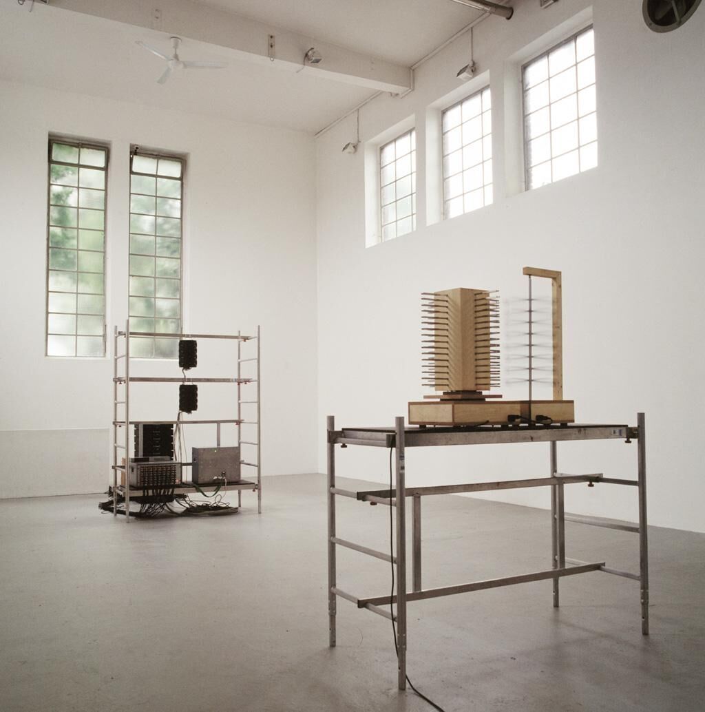 Die Klanginstallation „SINUSINUS“ kann als Modell oder Anschauungsbeispiel für zwei verschiedene oder mehrere Darstellungsweisen von Klang gesehen werden. Der analoge Teil präsentiert das hochkomplexe Schwingverhalten von „echten“ Stimmgabeln als ein Stück Metall, welches dreidimensional Schwingungen in alle Richtungen des luftgefüllten Raumes sendet. Der digital basierende Teil besteht aus einem gegenüberstehenden 64-kanaligen Lautsprechersystem, dessen Lautsprechermembranen in zwei zylindrischen Gehäusen eingebaut sind, die in alle Richtungen abstrahlen. Es ist im etwa gleichen Größenverhältnis dimensioniert wie der Resonanzkörper, auf dem die 64 Stimmgabeln montiert sind. Die auf allen vier Seiten angebrachten Stimmgabeln (4 x 16) rotieren auf einem Drehtisch. Dadurch verändert sich die raumfüllende Wirkung der leicht (etwa mikrotonal) verstimmten Stimmgabeln. Die durch die Dissonanz entstehenden Schwebungen erzeugen vom Standpunkt des Hörers abhängig verschiedenste Resonanzen. Das Lautsprechersystem wird von in Dolby-Digital (AC3) kodierten Aufnahmen der gleichen Stimmgabeln gespeist. Um die Komplexität der Nachbildungen zu erhöhen, wird das digitale System vom Klang des analogen gesteuert. Die einzelnen Kanäle der Aufnahmen werden dann mit hoher Geschwindigkeit auf die einzelnen Lautsprecher gelenkt. Der Hörer kann sich zwischen den beiden Teilen der Installation frei bewegen. Er kann selber den Versuch machen den technischen Aufwand einer versuchten Simulation für sich selbst zu rechtfertigen oder den kaum hörbaren, mit vielen vermeintlich störenden Nebengeräuschen durchsetzten Teil auf der anderen Seite zu genießen. In diesem Denkmodell stellt sich die Frage, ob das Resultat einer Nachbildung des Originals die gleichen Kriterien erfüllt, um dem Original ebenbürtig zu sein...
