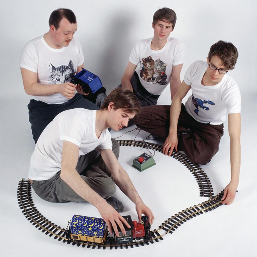 Stark inszeniertes Gruppenfoto der Künstlergruppe „Institut für Feinmotorik“.