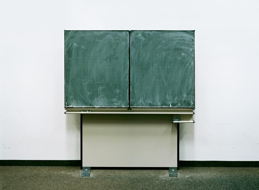 Die Tafelbilder entstanden von November 2002 bis Januar 2003 an der Universität Köln. Sie dokumentieren vorgefundene Zustände von Tafeln in den Räumen des philosophischen Seminars. Mein Interesse gilt dabei nicht den auf den Tafeln jeweils dargestellten konkreten Inhalten oder Sinnzusammenhängen - im weitesten Sinne also „Bedeutungen“ - sondern der chaotischen Anbringung und Wiederauslöschung von Schrift über einen längeren Zeitraum, die deren Funktion als Bedeutungsträger zugunsten abstrakter Zeichen in einer rein malerischen Gesamtkomposition aufheben. Ausgewählt wurden daher solche Tafeln, die auf den ersten Blick „leer“ erscheinen. Erst bei genauerem Hinsehen werden einzelne einander überlagernde Worte oder Sätze in mehreren Schichten ablesbar. Sie erlauben es die Tafeloberfläche als Momentaufnahme eines sich permanent fortschreibenden unkontrollierten Prozesses zu erfahren, in dem die füreinander blinden einzelnen Tafelanschriebe wie die Spuren ihren Auslöschung letztlich Beiträge zu einem kohärenten Gesamtbild darstellen. Auf den Tafelbildern überlagern sich, im Sinne von Erzählzeit und erzählter Zeit, zwei Zeitebenen, wenn nicht nur das Schriftbild der jeweils letzten Sitzung das der vorangegangenen ablöst, sondern ebenfalls geistesgeschichtliche Epochen außerhalb einer linearen Abfolge miteinander kollidieren. Der Aufbau der Tafeln in Analogie zum klassischen Altarretabel mit Predella, Mitteltafel und beweglichem Flügelpaar (im geöffneten Zustand als Triptychon, im geschlossenen als Diptychon) unterstützt formal deren Lesart als Bildträger. In Hinsicht auf das Medium Fotografie beziehen die Tafelbilder eine vermittelnde Position zwischen den beiden Polen eines dokumentarisch-sachlichen und eines abstrakt-malerischen Ansatzes.