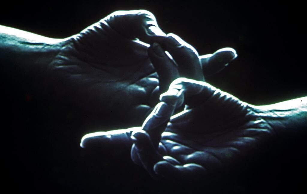 EPG = Expanded Polyphonetic Generation Audiovisuelle Performance für zwei Personen Die zwei ausführenden Akteure sitzen sich regungslos in einer dialogischen Situation auf zwei Stühlen gegenüber. Auf jeweils beiden Seiten in Kopfhöhe hängen zwei Kugellautsprecher. Beide Performer haben eine Sensorik (EPG- Elektropalatograph) im Mund, die Zungenbewegungen entlang des Gaumens in MIDI-Controller-Daten umwandelt. Diese MIDI-Signale steuern eine MAX/MSP-Programmierung, die verschiedene Samples einer Klangdatei ansteuert und abspielt. Die Klangdatei ist ein exklusiv für dieses Projekt geführtes Interview mit der amerikanischen Stimmperformerin Meredith Monk, zum Thema „Stimme und Identität“. Es wurden folgende Fragen gestellt: 1.„Stimme und Identität“ Was fällt Ihnen spontan dazu ein? 2. Gibt es für Sie bestimmte Arbeiten oder ein bestimmtes Stück, die damit zu tun haben ? 3. Bzw. : Gibt es für Sie eine bestimmte Arbeit, in der sich dieses Thema ausdrückt ? 4. Gibt es für Sie einen bestimmtem Stimmton oder Stimmklang, der Sie charakterisiert ? 5. Was ist für Sie der Unterschied zwischen nonverbaler und verbale Stimmidentität ? Die Fragen der Interviewer wurden herausgeschnitten. Die MAX/MSP-Programmierung greift auf die Stimme von Meredith Monk, aufgespalten in Silben und Phoneme des Interviews zu. Durch die musikinstrumentartige Nutzbarkeit der Apparatur sollen aus diesen Sprachteilen neue Begriffe und Wortreihen zusammengesetzt werden, so dass eine improvisatorische Kommunikation zwischen den Akteuren entsteht. Die visuelle Ebene der Performance besteht aus zwei Videoprojektionen, die der Gestenlehre des römischen Rethoriklehrers Quintilian entnommen sind. Zwei Gesten werden gezeigt; die eine Geste symbolisiert den Redebeginn, die Andere die Zustimmung. Die Handbewegungen sind extrem verlangsamt dargestellt, und stellen so die Eckpunkte im Zeitverlauf der Performance dar.