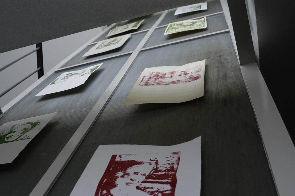 Entwicklung einer Drucktechnik mit Polystyrolplatten, einer Mischung aus Hoch- und Pochoirdruck. Seriendrucke + Präsentation