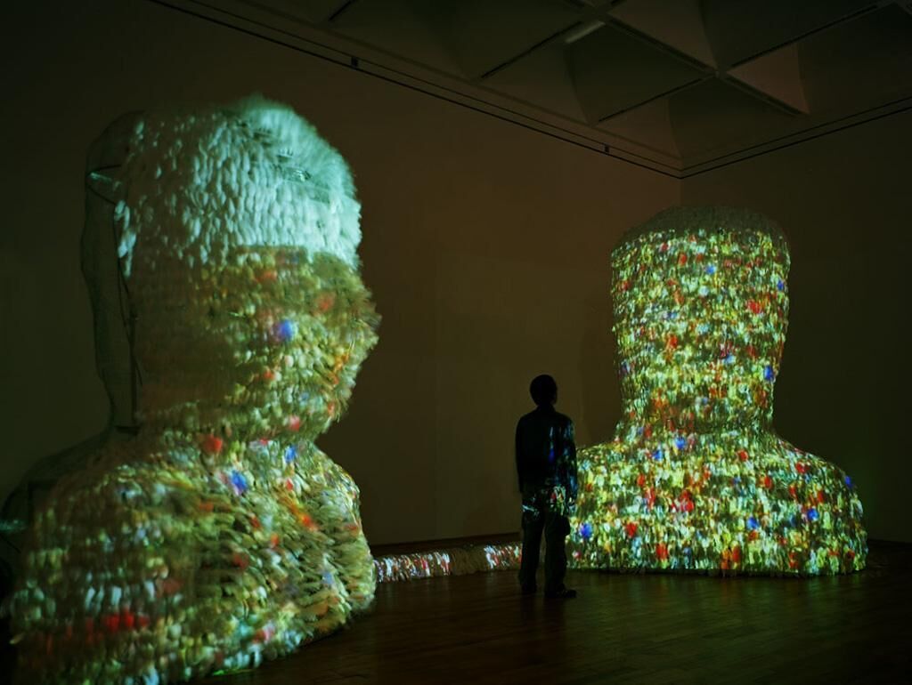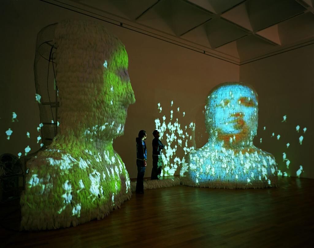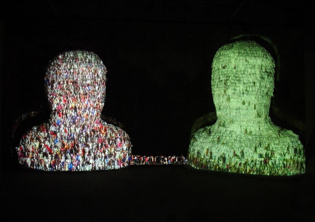 Das Ausstellungsprojekt setzt sich mit dem Verhältnis von Zivilisation, Migration und Lebensraum, von Individuum und Masse auseinander. Die Projektionsleinwand erweist sich als eine fragile Federwand, deren organische Einzelteile sich durch den Luftstrom von Ventilatoren aufrichten, um so den Bildern ihren Halt zu nehmen. Ein Menschenstrom setzt sich in Bewegung und lässt sich nur für Momente durch das Eingreifen des Besuchers zum Stillstand bringen. Mit zum Teil rasanter Geschwindilgkeit werden die Betrachter in einen Sog aus rhythmisierter Bilderfolge und Sound gezogen. Die Videoinstallation von mioon wirkt verunsichernd, bedrohlich, amüsant und beflügelnd. Wohin führt die Reise?