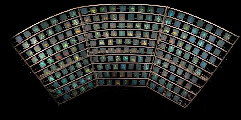 In front of the audience there is a stadium. 200 holographs hang down within this stadium to give a clap to the audience. Moving components (consisting of ten motors) are installed behind the 200 holographs to move them. With this motors the people shown in the holographs are generated to shout and cheer. If the audience stands in front of the stadium, it can hear sounds of shouting and cheering peoples, too. Actually in our huge modern society people are standing under the influence of mass media, politicians, capital and other external influences. Historically we have seen the example of control or domination thru this so many times. So with this works I want to show this situation and the lack of critical faculty of the general public, and the lack of personality of them. Besides that, I also want to show to the people that they are controlled right now by somewhat.