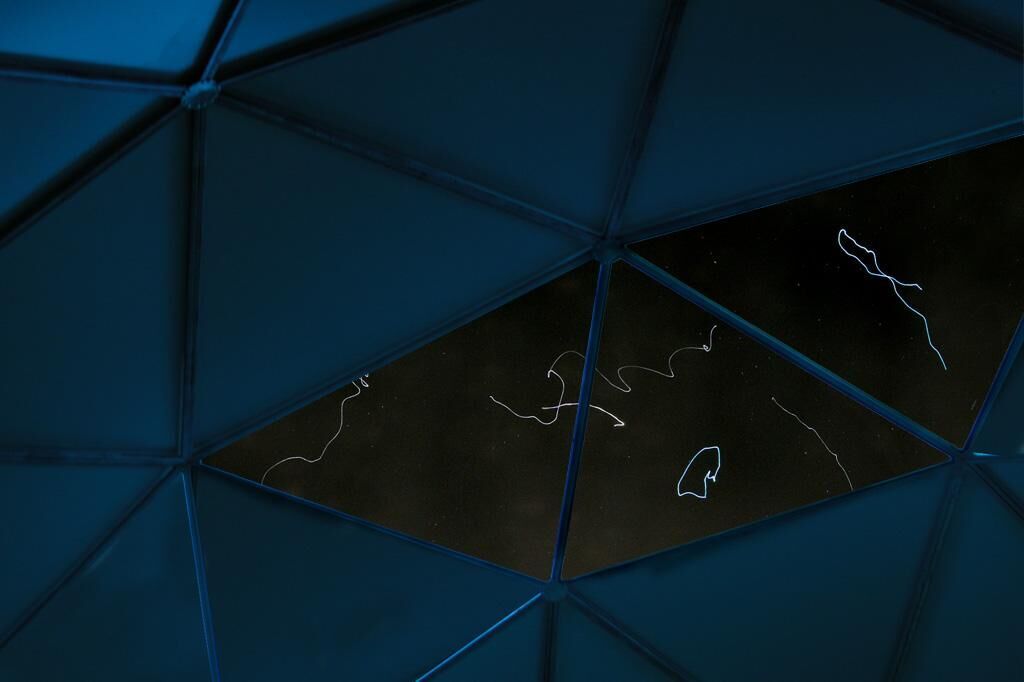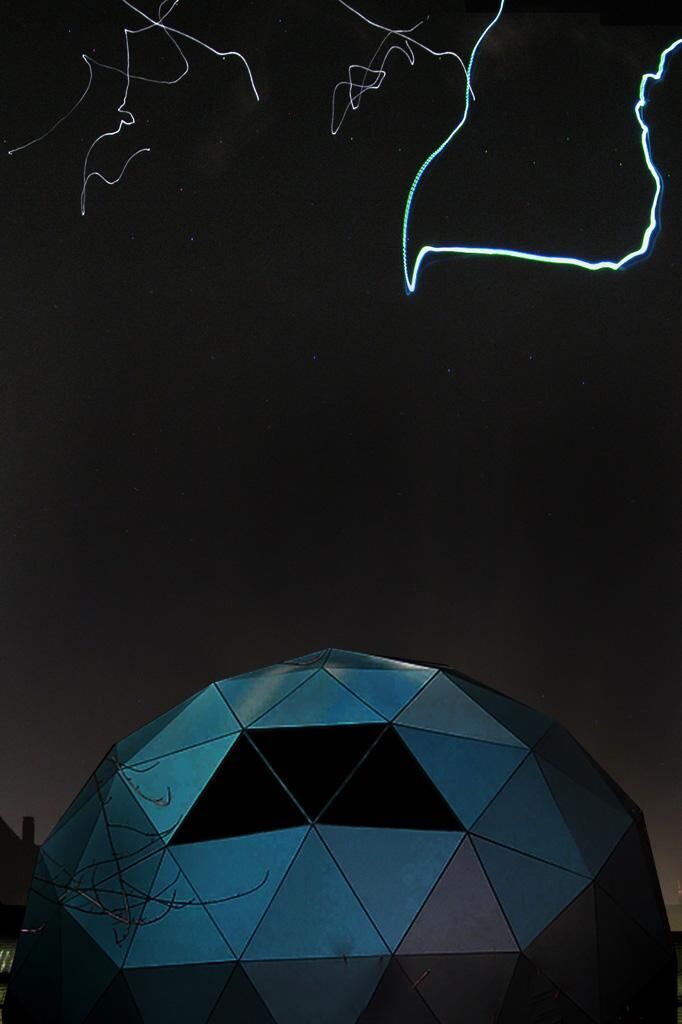 Ähnlich wie bei einer Sternwarte fokussiert sich der Blick aus einer geodätischen Kuppel heraus auf ein Sternbild aus sieben programmierten LEDs. Die LEDs sind in bis zu 20 m Höhe an jeweils einem schwarzen Heliumballon befestigt, sodass nur Lichtpunkte am Himmel zu erkennen sind. Je nach Wetter und Umgebungslicht verändert sich das ""Sternbild"". Bei Windstille in sternklarer Nacht sieht man leicht zitternde Lichtpunkte zwischen den realen Sternen, bei Wind tanzen die Lichtpunkte vor dem Fenster. Die Kuppel fokussiert den Blick auf einen Ausschnitt des Himmels. Die Umgebung wird ausgeblendet, die spezielle Geräuschkulisse durch die geödätische Bauweise verstärkt den Eindruck des Ortes. Bauweise und Material Die geodätische Kuppel mit 6m Durchmesser wird aus einzelnen Stahlelementen zusammengesetzt. Die Wandung der Kuppel bilden dreieckige Dibond-Platten, die mit einem speziellen Klettverschluss angebracht werden, sodass Öffnungen zu allen Seiten möglich sind. Die Kuppel ist mobil und kann zügigl auf- und abgebaut werden. Die sieben LED-Sterne wurden aus SMD-LEDs gefertigt und mit Mikroprozessoren versehen, welche die Stromzufuhr regeln, die Szintillation der Sterne imitieren und die Helligkeit steuern. Jeweils eine LED wird mit einem schwarzen Heliumballon in die Höhe gebracht. Die Bewegungen des Sternbildes sind für den Standpunkt vor dem Fenster in der Kuppel optimiert.