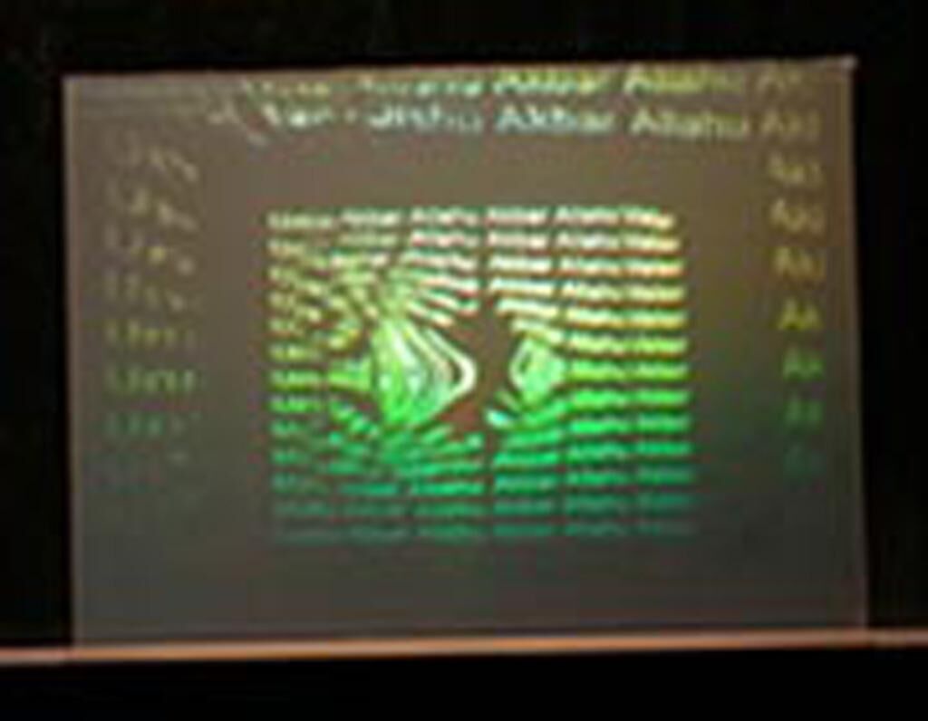 The project consists of sound, video projection and five holograms. The sound is a mixture of techno with pieces of religious Orthodox and Muslim songs. The video projection is a mixture of small fractions from the Bible with different languages and the Koran. The holograms are showing the transformation from the Lords Prayer ""Vater Unser"" to the worship Allāhu Akbar - God is great.