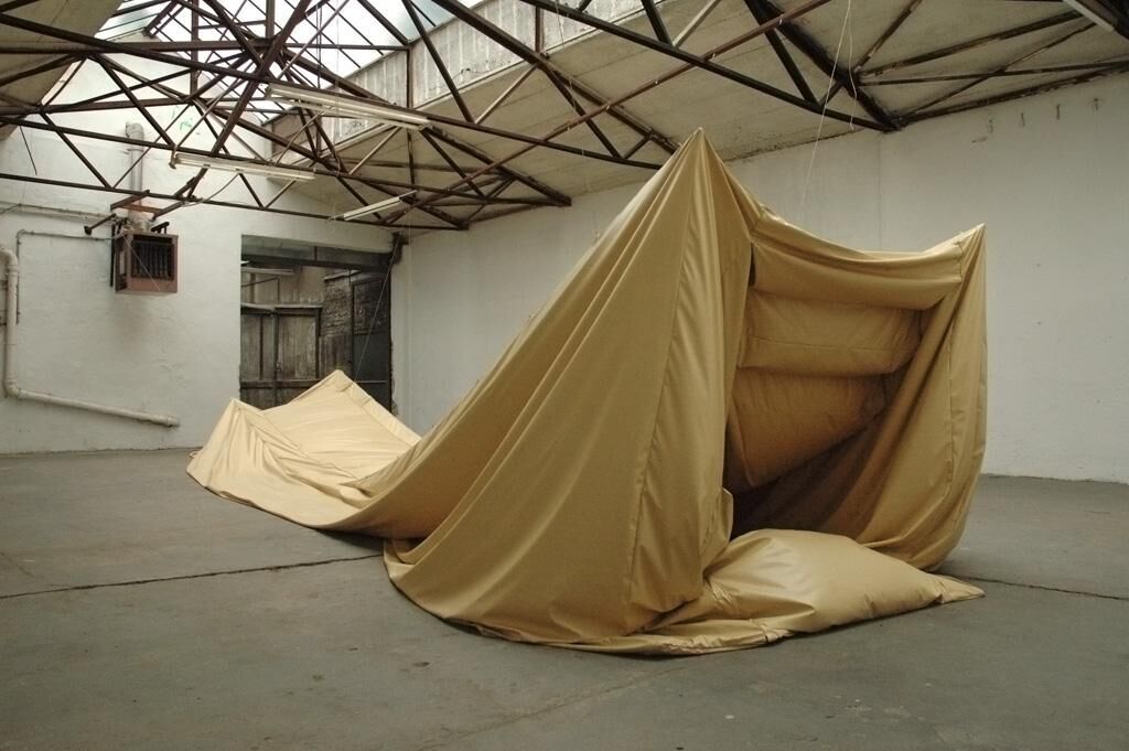 Ein langer Flur, nachgebaut aus hautfarbenem Kunstleder.