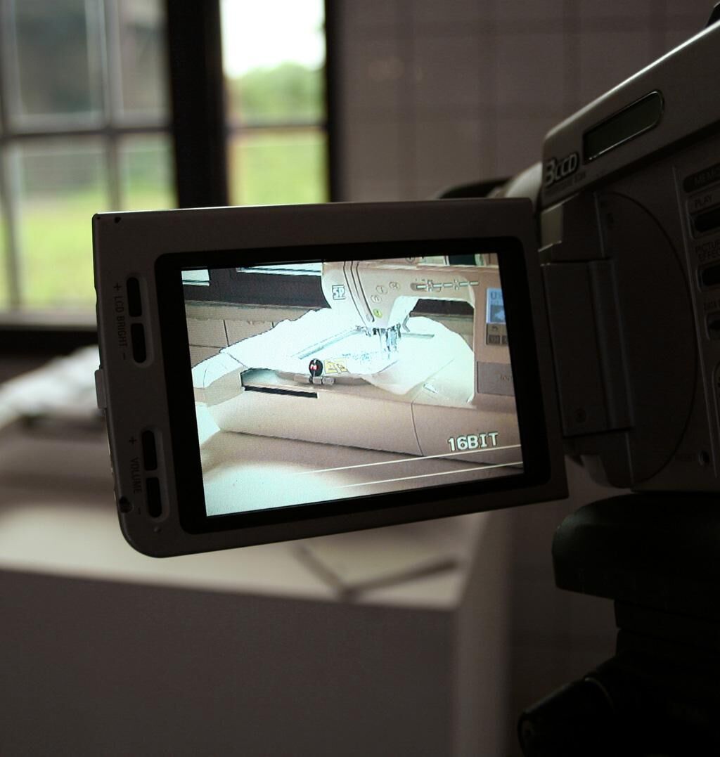 Die Anzahl der Datenbanken und Statistiken, anhand derer versucht wird, unsere Konsum- und Lebensgewohnheiten aufzunehmen und zu interpretieren, wächst ebenso wie die Anzahl der Überwachungs- und Kontrollmechanismen, die Ausschnitte aus unserem Leben aufzeichnen und festhalten. Dabei sind wir im Alltag nicht nur das „Opfer“, das im „benthamschen“ Turm beobachtet wird, sondern gleichzeitig auch Akteure: wie wir beobachtet werden, so agieren wir ebenfalls als Beobachter der anderen. Kameras, Bildschirme und Werbeflächen verbinden sich zu einem umfassenden Kontrollarrangement, wobei Medien und Werbung die Bilder bereitstellen, denen gemäß sich verhalten werden soll. Zugleich stellen die über uns gesammelten Daten die Grundlage für Werbung und Medien dar. Input und Output stehen in permanenter Wechselwirkung. Diesem Feedback gehe ich in der Installation nach. Die Bewegungen einer Stickmaschine werden mittels einer Kamera getrackt. Die aufgenommenen Daten werden in eine Datenbank eingespeist und einer statistischen Analyse unterzogen (Überlebensanalyse). Der Output dieser Analyse wird zurück zur Stickmaschine geschickt und von ihr gestickt. Ein Feedback entsteht: Die Stickmaschine ändert ihr Stickverhalten entsprechend der statistischen Interpretation der Daten, die die Kamera von ihr aufzeichnet. Ergebnis der Installation ist eine Reihe von gestickten Bildern, die den Sterbe-Prozess veranschaulichen: mit jeder Schleife nimmt der Schwarzanteil zu.