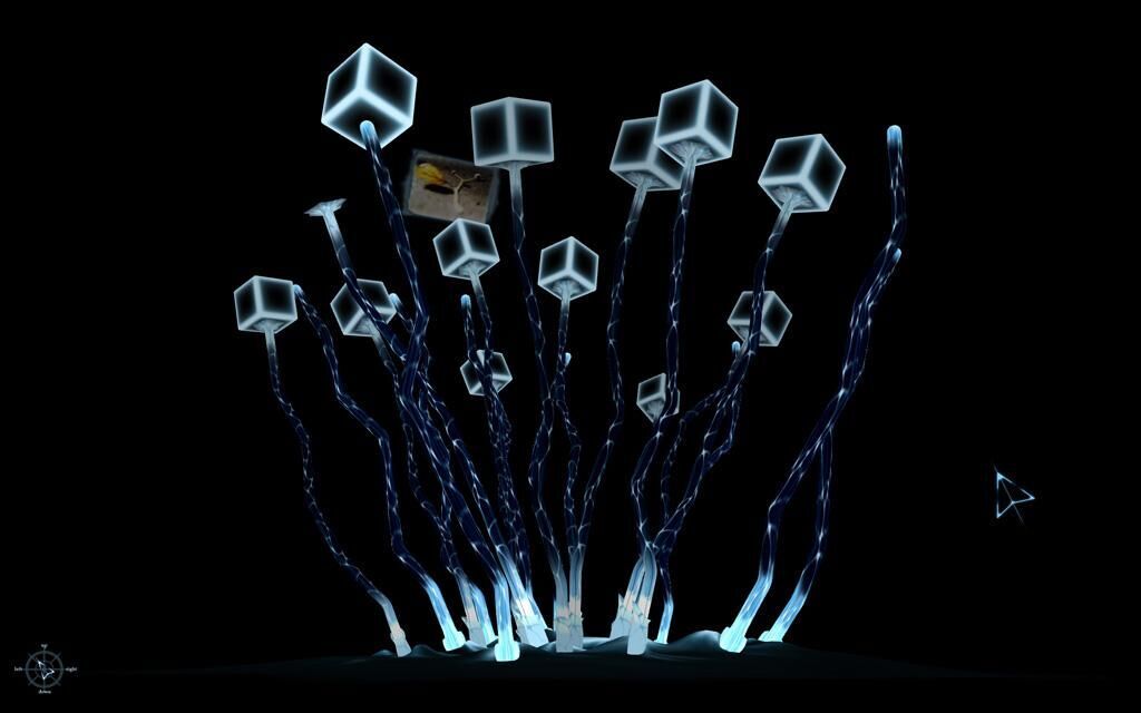 ""CableFlower"" is an interactive project, an experiment to create a dynamic user-interface. The main goal is to break up and to loosen the linear processing of a portfolio through playful elements. The timespan a user occupies himself with the portfolio is being increased. The CableFlower consists of stems, scapes and cubes as blossoms. Those threedimensional forms blow in the imaginary wind. The animations are embedded into a realtime-engine, usually used for programming the basis of first person shooters. The cube's contents - such as photogalleries, videos and other works - are activated through a mouse click and presented on a screen which pops up. Another click on the window or the cube makes the cube fall back onto the scapes. The user is supposed to be able to freely move around the object, including zooming in and out. This also includes the possibility to watch content from behind while it is being presented, since the screen is transparent, almost like a glass panel.