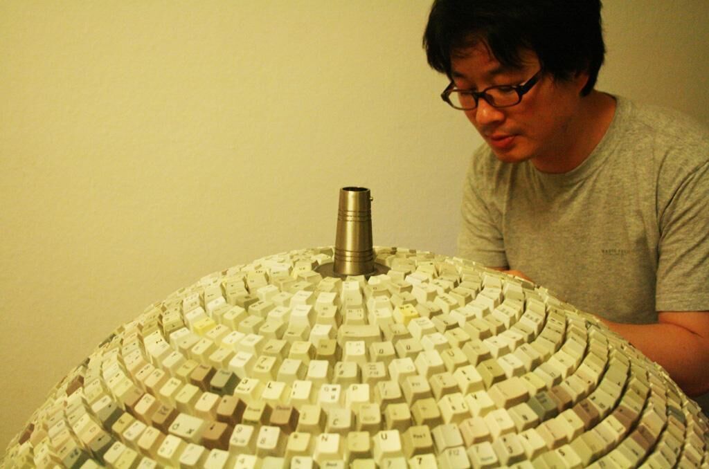 Durch die Tür gehen wir von einem Zimmer in das nächste. Wenn man das Zimmer als einen Raum versteht, ist die Tür gleichzeitig ein Eingang, der einen Raum mit einem anderen verbindet, aber auch ein Ausgang und Durchgang. So gibt es sichtbare Türen, aber auch solche, die nicht sichtbar sind. Die Computertastatur, in die wir ständig hauen / der wir uns ständig bedienen, ist ein notwendiges Mittel, mit dem wir in die digitale Welt hineingelangen. Mit der sich wiederholenden Aktion des Tippens treten wir in eine neue Welt ein. Die Tastatur übernimmt dabei die Rolle einer Tür. Die einzelnen Tasten sehen zwar gleichförmig aus, ihre Inhalte sind aber jeweils vollkommen verschieden. Und die Summe der einzelnen Tasten spielt eine große Rolle / ist wesentlich beim / für den Eintritt in eine andere Welt. Ich gehe unzähligen sich wiederholenden Aktionen wie dem Tippen der Computertasten nach. Jeden Tag schlafe ich, stehe ich auf, esse und arbeite. Diese sich wiederholenden Aktionen erschaffen mit der Zeit ein neues Ich. Ist es möglich, dass sich diese alltäglichen, sich wiederholenden Aktionen dem Tippen der Computertasten gleichen, mit dem ich in eine andere Welt eintrete?