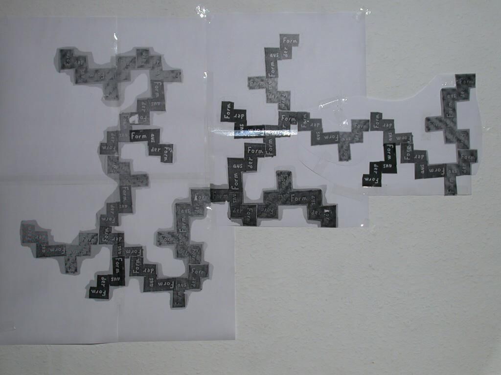 In this work cycle I tried to develop an understanding of form or perhaps objectivity. Meant as something which was not always there, but something which comes into being by the infinite interaction of the self and its own description. The form, which is ritualistic. The form, which gets its perceivable shape through the endless, perhaps inaccurate self reproduction. What stays, stays over time, getting stronger, obscuring/blurring its own past.