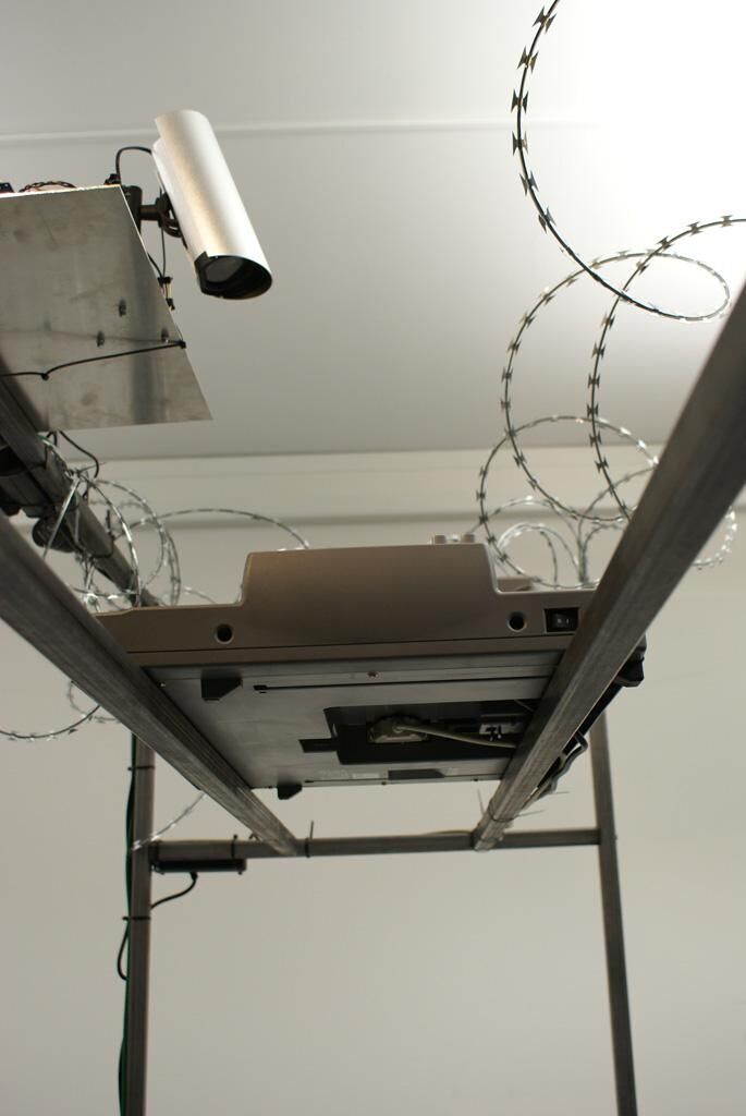 With the use of mobile phones within the prison cells, the inmates are able to breach the imposed condition of asceticism. The moment of self reflection is interrupted, the time axis of their thinking process is transported from the past into the ‘now’. A contact to the outer world, to their life outside of the prison walls, is created in the loneliness of their confinement. The architecture of restriction is overcome; the electronic prosthesis creates a leak within the static walls of the cell. This leak within the power structure is the starting point of this work. It shows how the development of technology can create holes, through which, in the sense of Villém Flusser, “…the wind of communication blows.