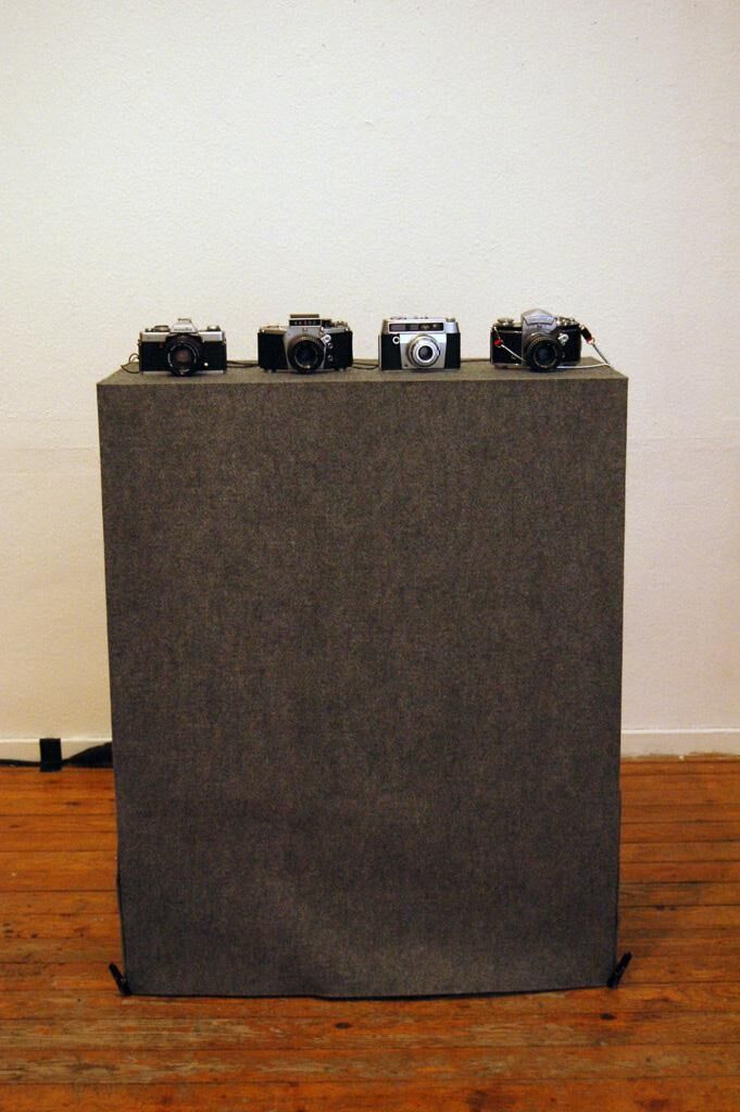 „Ode” ist ein improvisiertes Stück mit einer bildlichen, aber kryptischen Partitur, und ist als spielbare Skulptur zu verstehen. Anfang und Ende des Sücks sind vorgegeben, genaue Zeitabläufe werden nicht benötigt bzw. absichtlich nicht terminiert. Dieses Stück wird auf einem selbst entworfenen Musikinstrument, erbaut aus vier analogen Kameras auf einem eigens dafür konzipierten Sockel, der zur optimierten Spielbarkeit beiträgt, gespielt. Die Kameras sind jeweils an ein Kontaktmikrofon angeschlossen, was wiederum ermöglicht, durch Auslösen und Aufziehen der Kameras Geräusche zu erzeugen. Durch die ständige Wiedergabe eines sich aufbauenden Loops gibt es mit der Zeit eine Überlagerung, die sich im „Wirrwarr” so verliert, dass die einzelnen Töne selbst verwischen. Am Ende steht dann die Lücke, oder die Stille. Damit geschieht der Verweis auf einen der Apoptose ähnlichen Prozess, da die Kameras, vielmehr ihre Töne, sich selbst und gegenseitig am Ende „auslöschen”.
