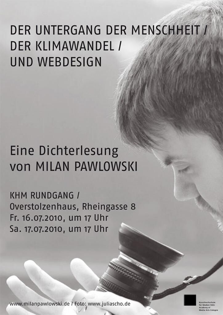 Subtitle: Lesung von Gedichten und lyrischen Texten von Milan Pawlowski im Rahmen der Jahresausstellung der Kunsthochschule für Medien in Köln Year: 2010 Categories: Performance, lecture performance