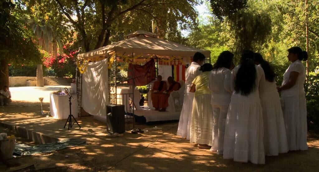Sundays in Nicosia; thousands of Asian labour migrants meet in the old city of Nicosia to spend together their only day off within the week. These women come from Sri-Lanka, India, the Philippines and Vietnam to Cyprus, alone without family, for a limited period of time in order to work in the household or as carers at home. The film observes the course of this day over a time span of a year. We are there, at their ceremonies and rituals, whilst preparing meals and playing games. All these human activities attest the transition of a desolate place into a social space - at the edge of urban life where locals don't linger around and yet in the heart of the town. The meeting points of the women lie between two borders, on the one hand the Venetian wall, once separating town from land, on the other the UN-Bufferzone which divides the city and the island in North and South. This intermediate zone is being enlivened every Sunday whilst history can be deduced from the surfaces of the buildings. A place solidified in its historicity shines in a new light - dies solis. A film about joy, pride, sensuousness, satisfaction, about people who radiate a sense of well-being far away from home.