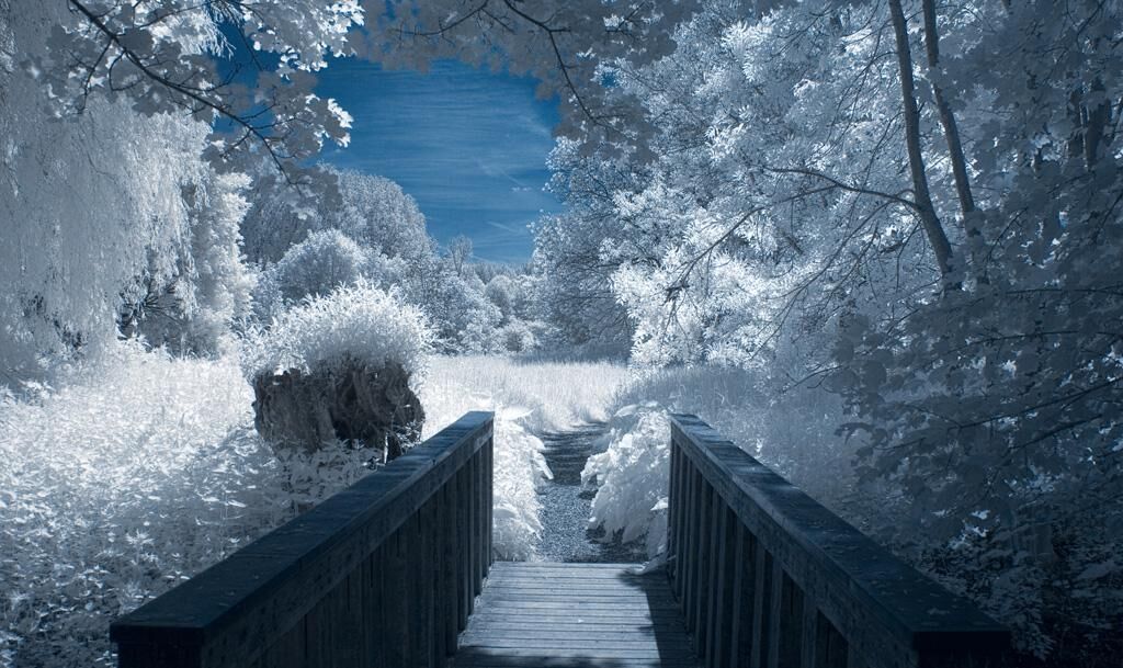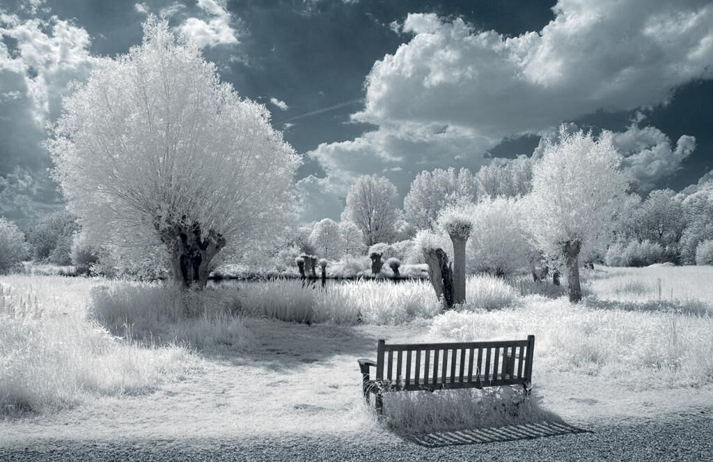 Die Fotoserie “Genius Loci” beschäftigt sich mit dem Geist eines Ortes. Die Landschafts- und Detailaufnahmen entstanden auf der Museumsinsel Hombroich und der Raketenstation in Neuss. Die Motive sind mit einer umgebauten Digitalkamera aufgenommen worden. Dabei wurden verschiedene Lichtspektren isoliert und separiert als Belichtungsquellen genutzt. Diese erzeugen eine besondere Ästhetik und sind für Menschen normalerweise unsichtbar. Die visuelle Arbeit wurde von einer Auseinandersetzung mit den akustischen Qualitäten des Ortes begleitet. Daraus sind „field-recordings“ und Sonifikationen hervorgegangen. Bei den Sonifikationen wurde ein umfangreiches ortsbezogenes Datenmaterial (meteorologische Daten) verarbeitet und in eine auditive Installation transformiert.