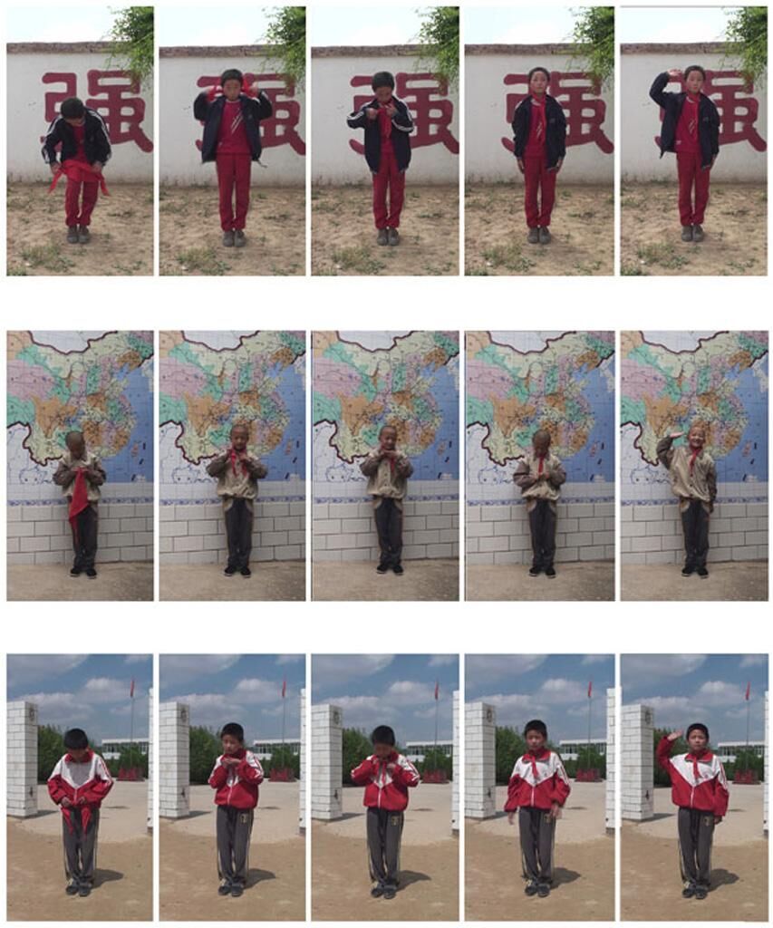 Das rote Tuch ist Symbol für kommunistische Politik. Seit meiner Kindheit kenne ich das Symbol des roten Tuches. In meiner Schulzeit musste ich stets ein rotes Halstuch tragen, meine Eltern in ihrer Schulzeit ebenso. Die einheitliche Erziehung ist in ganz China modellhaft. Den Kindern wird von der kommunistischen Partei eingeflößt, was die Geschichte und die Bedeutung des rotes Halstuchs ist. Was ist der Auftrag der Zukunft für die Kinder? Heute leben Kinder in einer von rasantem wirtschaftlichem Wachstum geprägten Gesellschaft. Viele Kinder fragen sich, warum sie ein rotes Halstuch tragen müssen. In der Schule lassen die Lehrer keinen Zweifel daran, dass es wichtig ist, die roten Halstücher zu tragen. Nach und nach gewöhnen sich die Kinder an diese Tatsache. Es ist die kollektive Atmosphäre in China. Es ist eigentlich ein starker Kontrast, wenn man reine, unvoreingenommene Kindheit und rote Propaganda zusammenfügt.